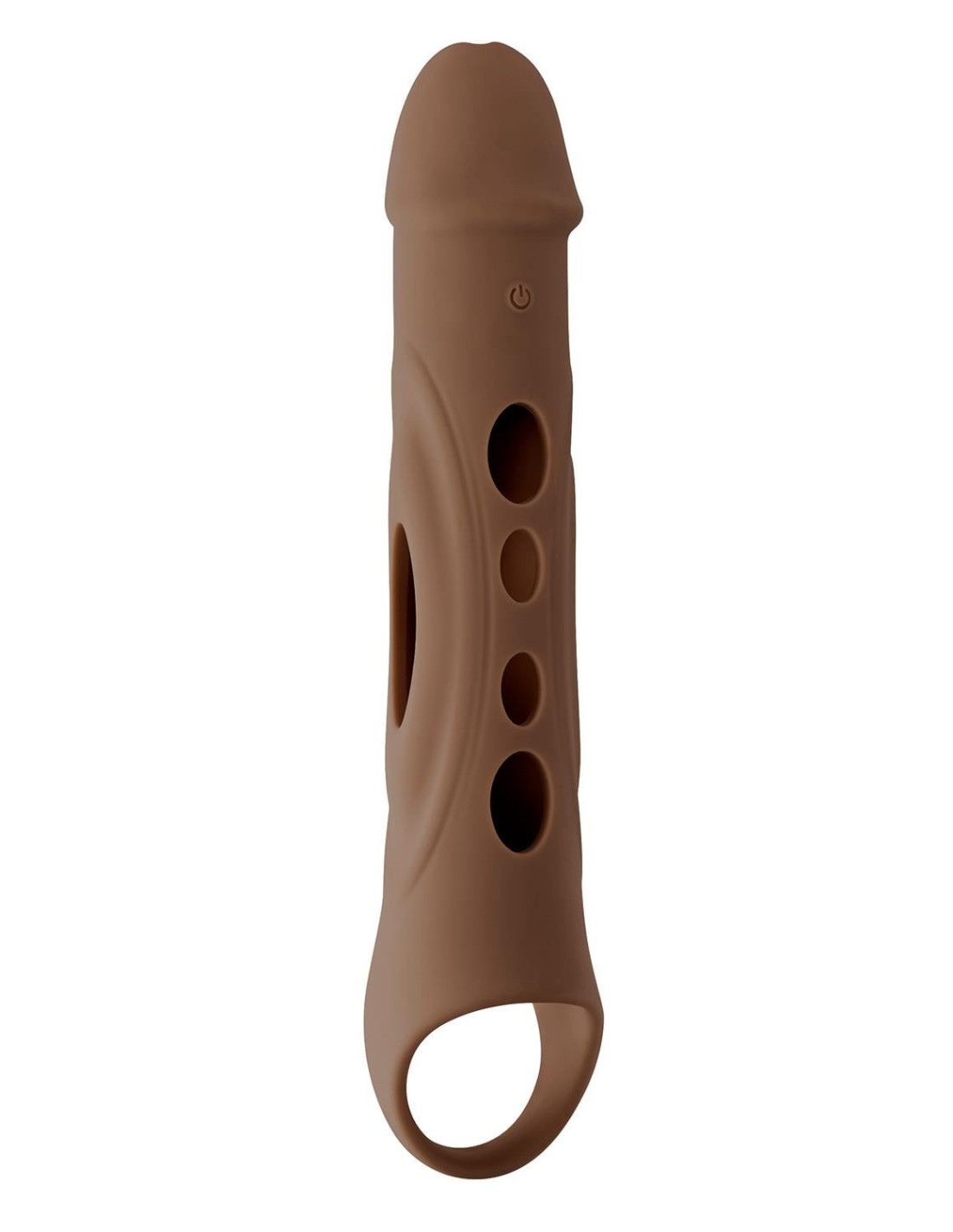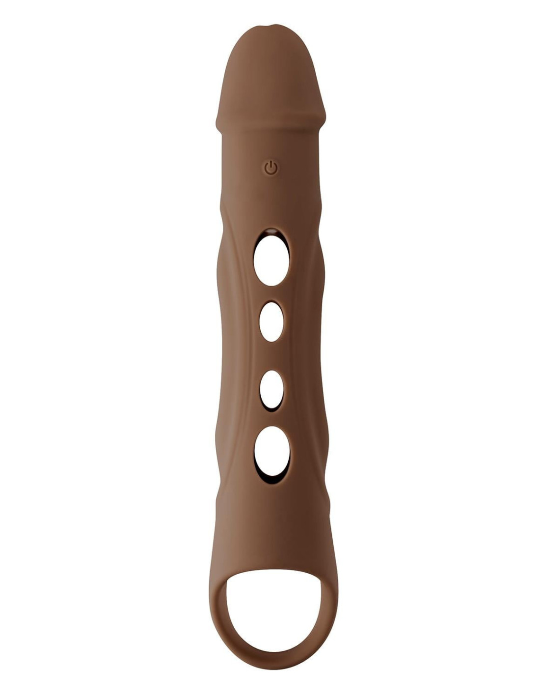 Increase your member with this remote-control penis extender that’s comfy and pliable – and vibrates in 10 speeds! Nestle your balls into the end loop and enjoy the peek-a-boo holes throughout the shaft as it buzzes all around you. Let the life-like head with its realistic crown ridge add to your natural length, even under water as it’s fully submersible. USB rechargeable, easy to clean, 25' (7.6 meters) remote range.Vibrating remote control penis extenderC-Ring at base for ball stimulationLife-like textured sleevePeek-a-boo holes to see penis10 vibrating speeds & functionsMade from soft & pliable siliconeRemote made from ABS plastic1-button control on toy, 2-button remoteButtons light up when in useHeight: 10.56 inch / 26,8 cmDepth: 2.15 inch /5,5 cmWidth: 2.15 inch / 5,5 cmInsertable length: 5.5 inch / 13,9 cmInsertable diameter: 1.75 inch / 4,4 cmRemote Dimensions:Height: 2.57 inch / 6,5 cmDepth: 0.69 inch / 1,7 cmWidth: 1.41 inch / 3,6 cmRemote range: 25' / 7,6 metersWaterproof & submersiblePhthalate & latex freeUSB rechargeable, cable includedRemote uses one A27 12v battery, included