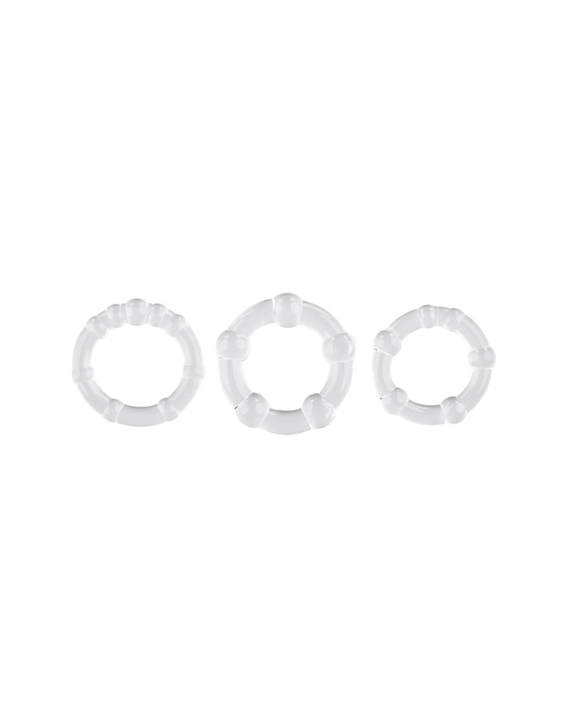 Wzmocnij swoją erekcję dzięki tej kolekcji z 3 pierścieniami, która oferuje 3 poziomy wsparcia – przytulne, ciasne i intensywne. Używaj jednego bardzo rozciągliwego pierścienia na raz lub wszystkich 3 na raz, aby cieszyć się twardszym i mocniejszym doświadczeniem.