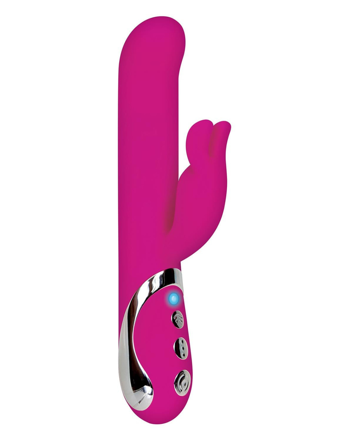 This big, gorgeous rabbit is as powerful as it is versatile! Made from silky, smooth luxurious silicone, its controls offer separate buttons for every function including direction rotation, shaft function & rabbit ear vibration! Rotating beads in the shaft guarantee a smooth ride every time, and the LED light and chrome finish make sure you can make your dreams come true in style! Clean up easily with toy cleaner and a warm water rinse.Made from silky, smooth luxurious siliconeLarge, powerful rabbit vibratorGreat for intense orgasmsTotal length 8.5” / 21,6 cmInsertable length 4.5” / 11,4 cmWidth 1.35” / 3,4 cmRotating beads in shaft offer smooth action1 Button for controlling rotation direction1 Button for controlling shaft1 Button for controlling rabbit stimulatorShaft has 3 speeds, 5 functionsRabbit stimulator has 3 speeds, 5 functionsStylish chrome finishPractical LED lightPhthalate and latex freeWaterproofRechargeable with USB cable included