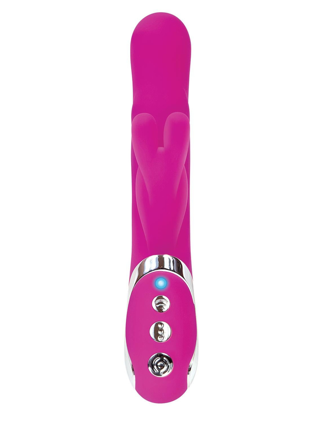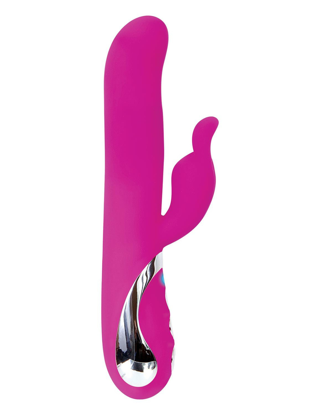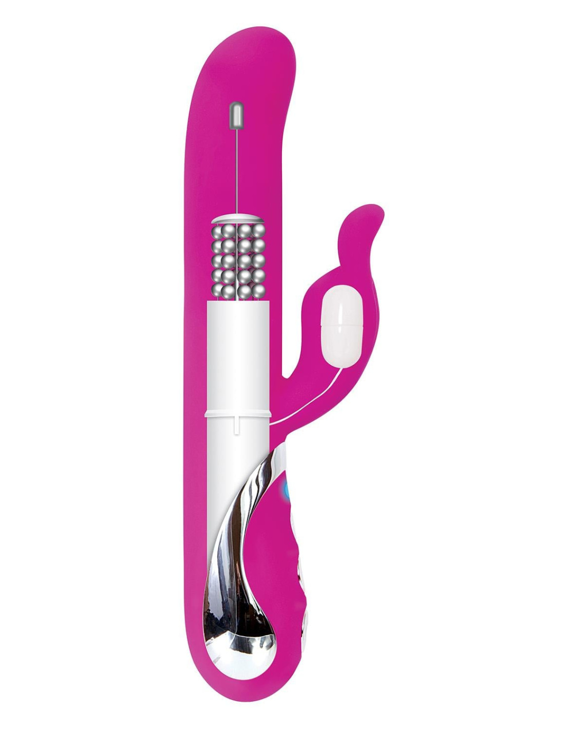 Ten duży, wspaniały królik jest równie potężny, co wszechstronny! Wykonany z jedwabistego, gładkiego, luksusowego silikonu, jego elementy sterujące oferują oddzielne przyciski dla każdej funkcji, w tym obracania kierunku, funkcji wału i wibracji uszu królika! Obrotowe koraliki w trzonku gwarantują płynną jazdę za każdym razem, a oświetlenie LED i chromowane wykończenie sprawią, że możesz spełniać swoje marzenia w wielkim stylu! Łatwe czyszczenie za pomocą środka do czyszczenia zabawek i spłukiwania ciepłą wodą.Wykonane z jedwabiście gładkiego, luksusowego silikonuDuży, mocny wibrator w kształcie królikaDoskonały do intensywnych orgazmówDługość całkowita: 21,6 cmDługość wkładana: 11,4 cmSzerokość: 3,4 cmObracające się koraliki w trzonku zapewniają płynne działanie1 Przycisk do sterowania kierunkiem obrotów1 Przycisk do sterowania trzonkiem1 Przycisk do sterowania stymulatorem królikaWał ma 3 prędkości, 5 funkcjiStymulator królika ma 3 prędkości, 5 funkcjiStylowe chromowane wykończeniePraktyczne światło LEDNie zawiera ftalanów ani lateksuWodoodpornośćMożliwość ładowania za pomocą dołączonego kabla USB