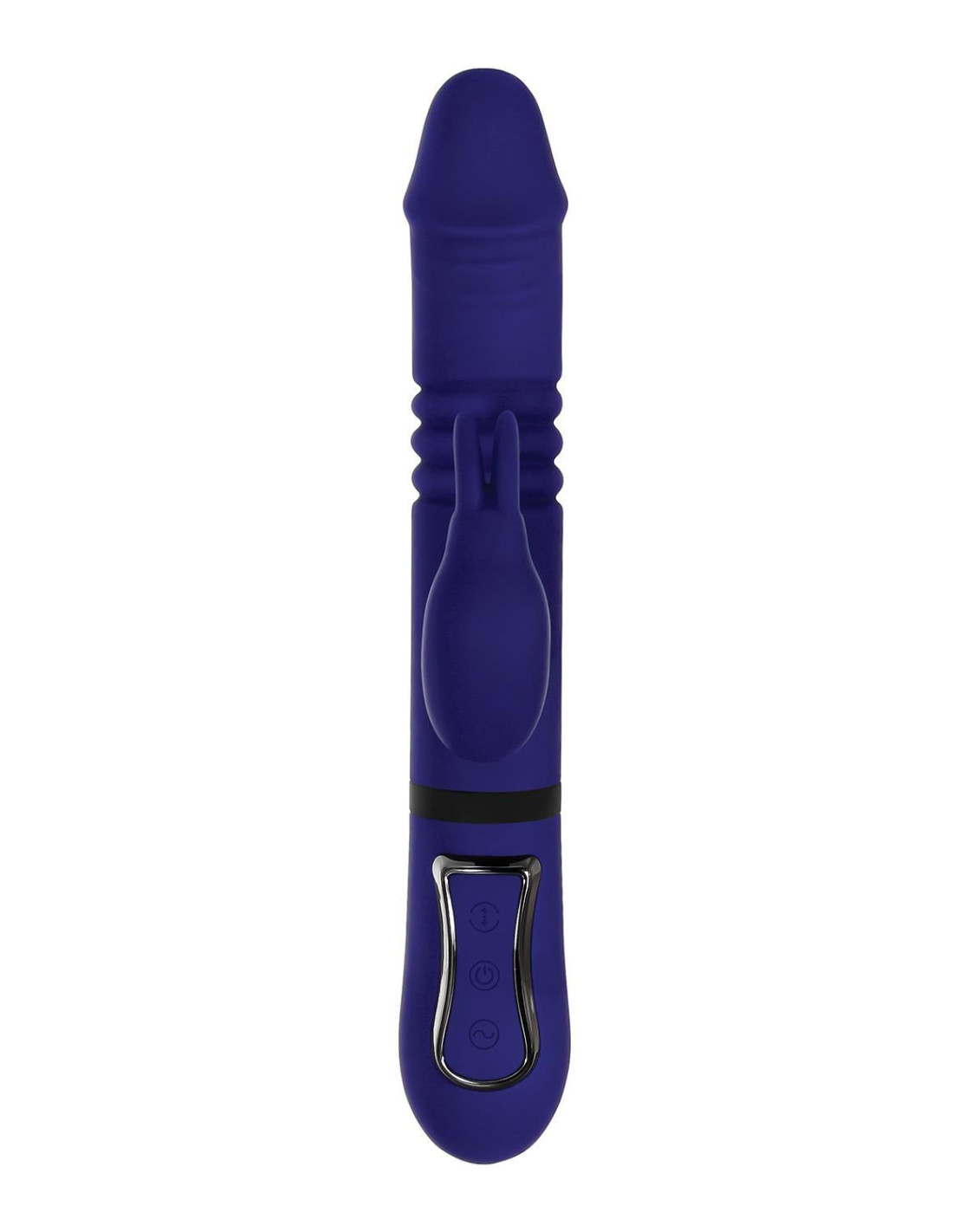 This tall, smooth rabbit vibe is ready to thrust all night! With a supple, textured tip and an accordion center that stretches in and out, you’ll be amazed at the look and feel of the powerful thrust function. But this large fully submersible shape has a few more secrets up its sleeve – a powerful rabbit shaft whose bunny ears just won’t quit, and rotating beads in the shaft that churn and spin with an erotic rhythm perfect for any massage! Between the thrusting, rotating and powerful vibrations, you’ll be headed for a mind-melting experience in no time, especially with the ergonomic controls that let you customize as you go. Fully rechargeable and easy to clean!Thrusting rabbit vibrator with rotating shaft beadsShaft thrusts with 3 speeds10 powerful vibrating speeds & functionsBeads rotate down shaft for churning massageVibrating rabbit stimulatorBlue LED illuminates buttons when in useMade from body-safe smooth siliconeDetail made from black chrome-finished ABS plasticDimensions: H x D x W: 9.8 x 2.75 x 1.55 inch / 24,9 x 6,9 x 3,9 cmInsertable length 5 inch / 12,7 cm Insertable width 1.4 inch / 3,5 cmShaft thrusts 0.5 inch / 1,3 cmWaterproof & submersiblePhthalate & latex freeMagnetic rechargeable, USB cable included Gender X