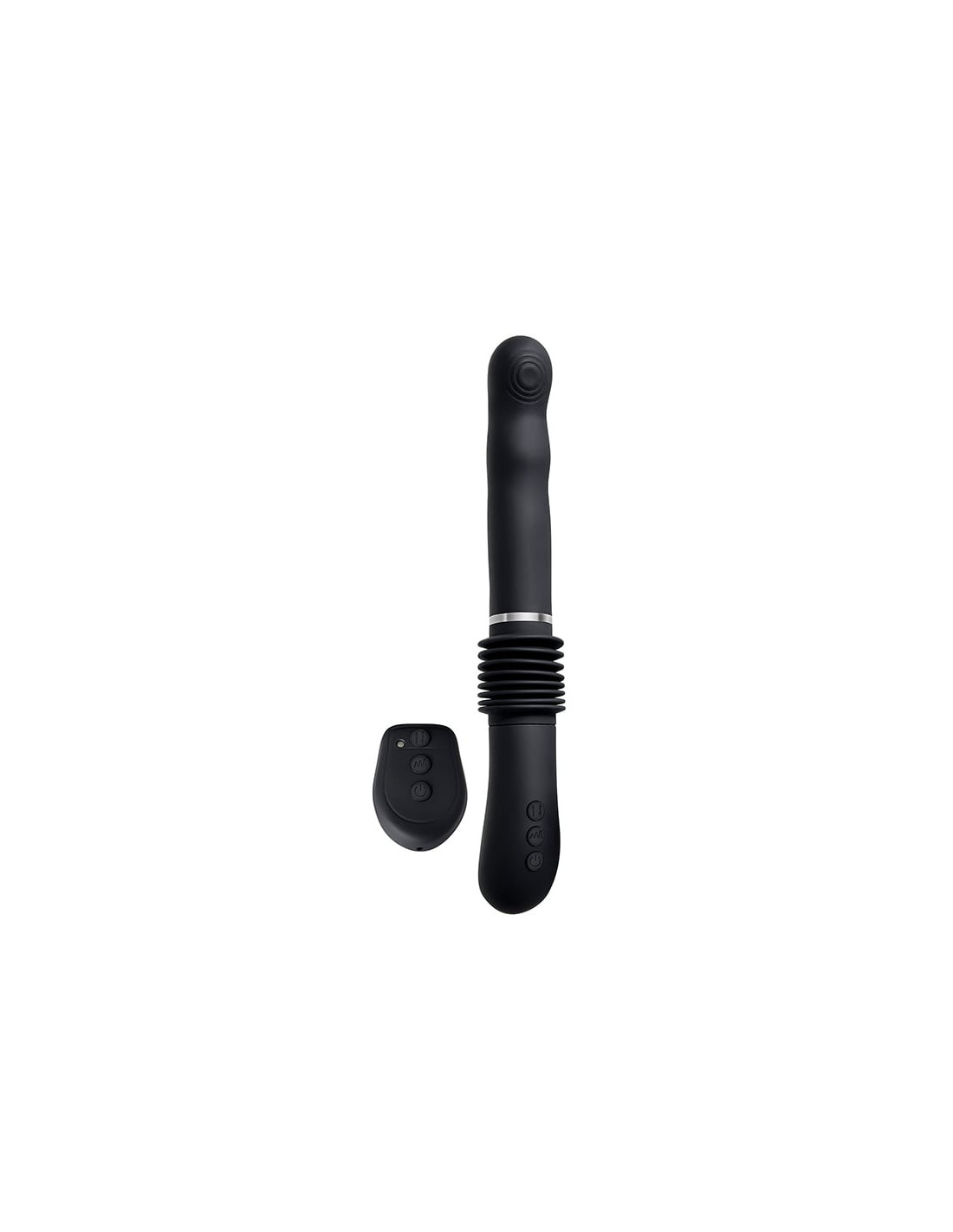 point it in any direction you desire, using the wireless remote control to get the perfect combination of mind-melting vibes and over 3 inches (7,6 cm) of thrust! Recharge both the toy and the remote with a secure USB connection to keep your sex machine ready for its next use! Powerful G-spot thrusting vibrator7 Vibrating speeds and functions3 Thrusting speedsOver 3 inch (7,6 cm) of thrust Remote controlled or manualRemovable suction cup mount, 3 inch / 7,6 cmMount adjusts to all angles, push-release to removePerfect for hands-free realistic playGive remote to partner for couples playRemote control range 23 feet / 7 meterG-spot head with circular texturesMade from smooth siliconeDetail made from durable ABS plasticEasy to use 3 button control on toy and remoteLED lights illuminate buttons when in useVibe height: 12.5 inch / 31,75 cmInsertable length: 6 inch / 15,2 cm Vibe width: 1.44 inch / 3,6 cm Vibe depth: 1.53 inch / 3,9 cm Remote height: 2.3 inch / 5,8 cm Remote width: 1.66 inch / 4,2 cm Remote depth: 0.65 inch / 1,6 cmRechargeable,