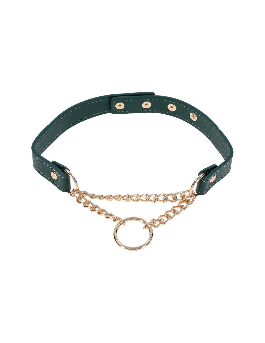 A quiet symbol of devotion, worn boldly or tucked beneath your collar. The Indica Day Collar blends soft emerald faux leather with rich gold hardware for a subtle yet striking everyday accessory. Designed with extra snaps for a more inclusive fit, this collar is adjustable, comfortable, and perfect for all-day wear — whether you're out and about or staying in control behind closed doors.Emerald green faux leather with luxe gold hardwareExtra snaps allow for a wider, more inclusive fit, 15-19 inch / 38-48 cmLightweight design for discreet, comfortable daily wearMaterials: 60% Polyurethane, 40% IronPackaging details: Hang CardAbout IndicaEmerald + Gold Aesthetic: Lush faux leather, shimmering hardware, delicate feathers, and crystal detailsInclusive & Accessible: All-gender, beginner-friendly, approachable BDSM designs