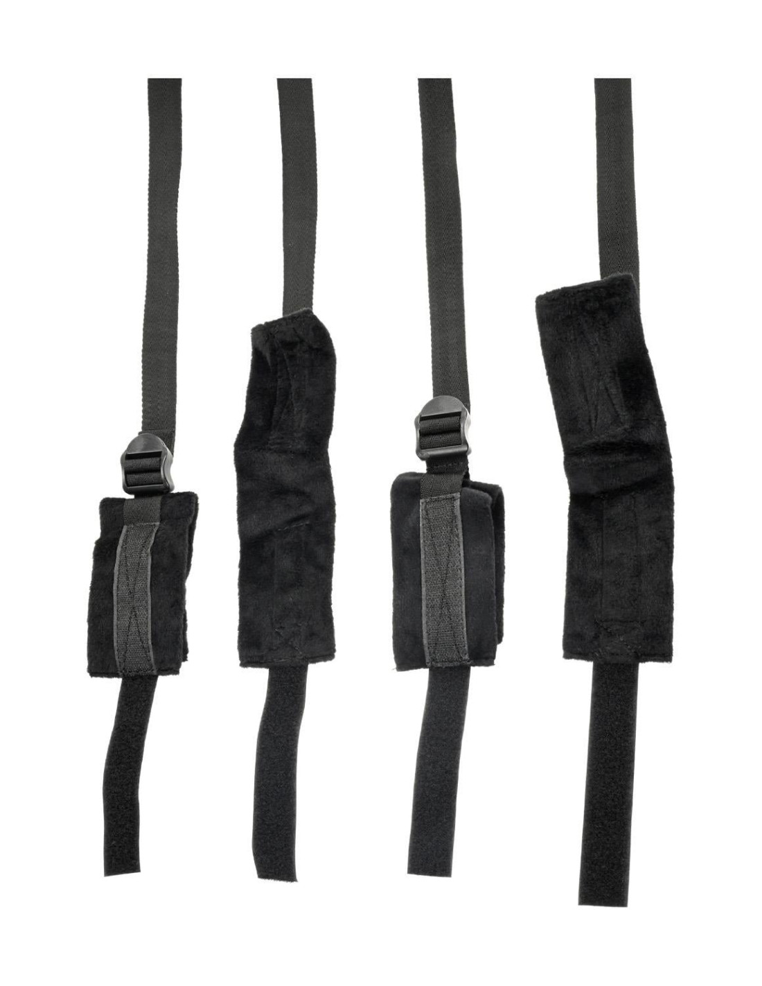 Make any bed your bondage playground with this easy to install kit. No bed posts required! Four soft cuffs are attached to 60 inch adjustable straps. Also includes a 60 inch adjustable connector strap for a secure fit. Portable and perfect for travel.Product Specifications:4 - 60 inch (152 cm) adjustable straps with cuffs1 - 60 inch (152 cm) connector strapFeatures:Good For BeginnersAdjustableMaterial: Polyester / ABS Plastic / Polypropylene