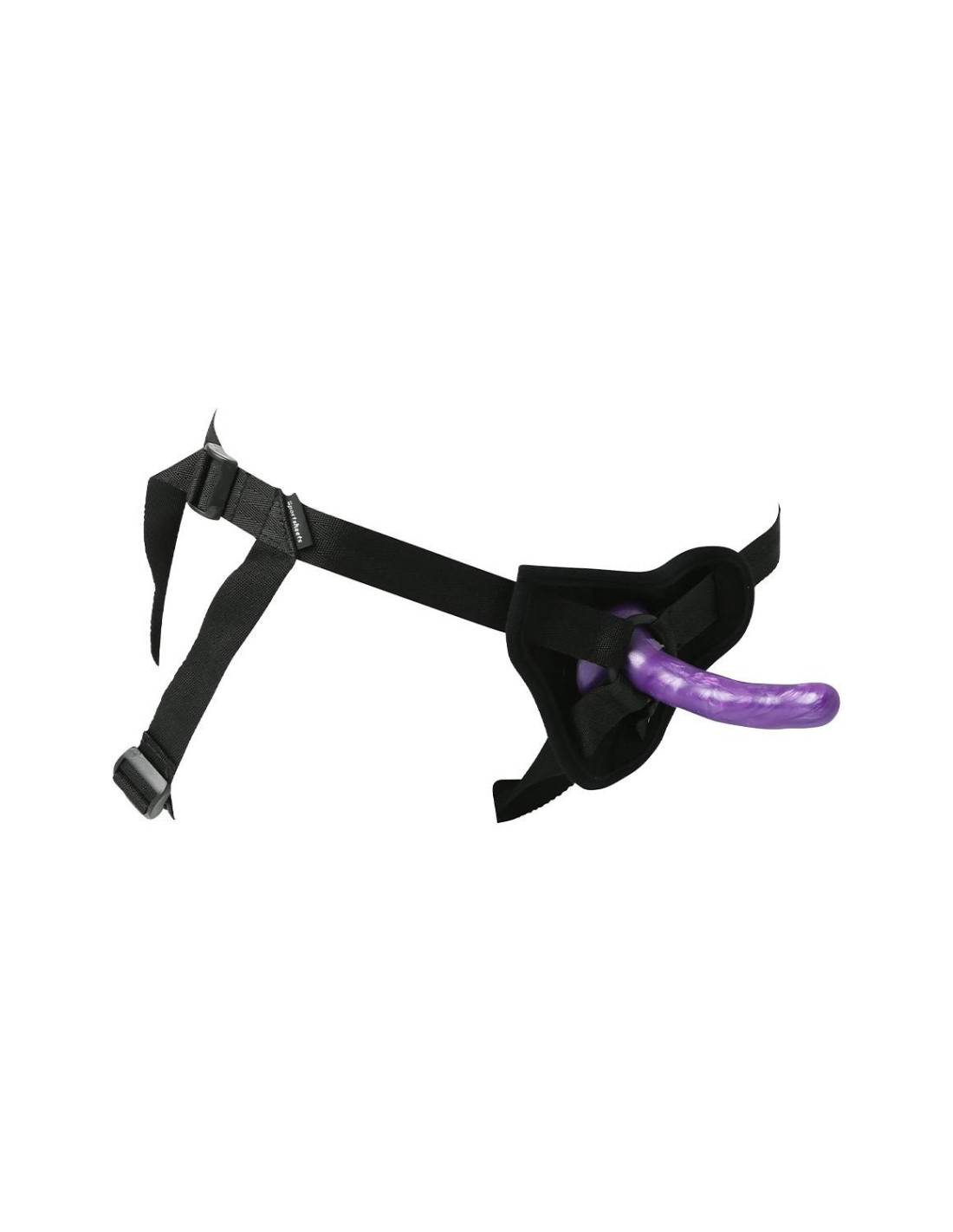 A great kit for newcomers with lasting versatility. A perfect kit for beginners or those who prefer a smaller penetration! Weve included a more slender dildo option to gently introduce couples to the plethora of pleasure that penetration can provide. Great for pegging! The included dildo is made of high-grade silicone that is non-porous and phthalate-free. As you and your lover gain more experience and dare to take your new private pastime to the next level, you can continue to expand the fun with larger, longer and more specialized dildos. Adjustable straps create a customized fit for a variety of body types.Features:Measurements: adjusts up to 60' (152 cm) hip size.Dildo is 5.5' (12.7 cm) in length, 0.87' (2.2 cm) in diameterHarness accepts up to 1.25' (3.2 cm) diameter dildosDildo is not compatible with silicone lubricantSilicone beginner's dildo included