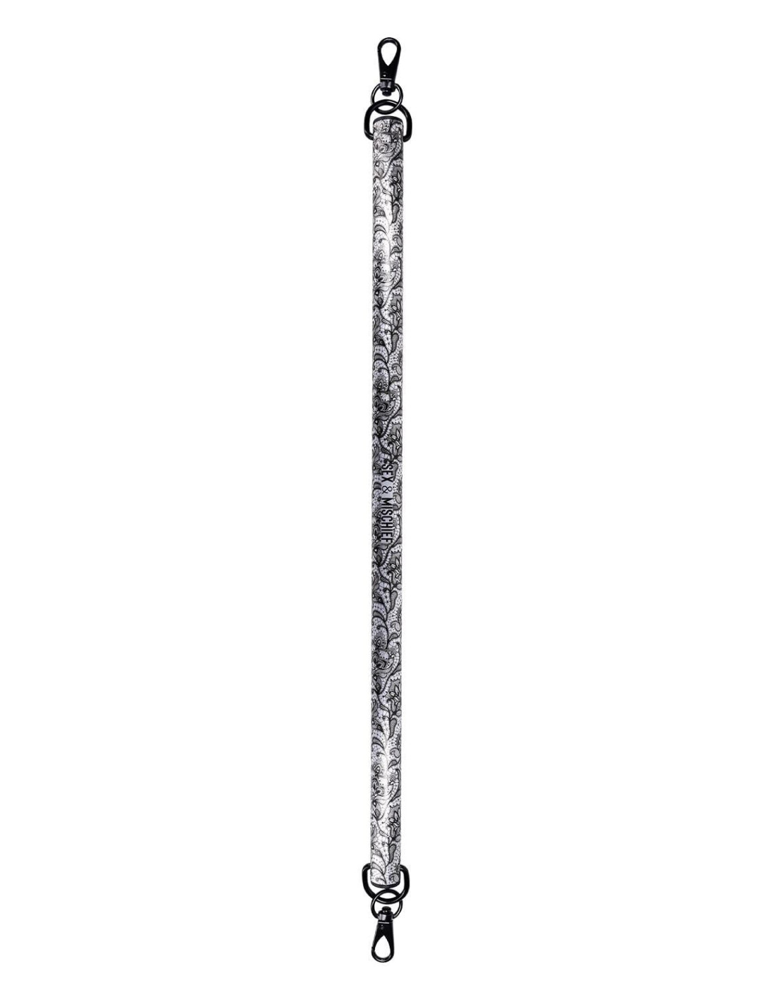 Indulge in the perfect blend of sophistication and seduction with this sultry metal spreader bar, adorned with an elegant black lace-etched design. The intricate detailing adds a sexy, refined edge, transforming restraint into an art form. Designed for both style and function, this spreader bar features sleek black clasps on each end, ensuring a quick and secure connection for effortless play. Whether you're exploring new levels of control or enhancing your intimate moments, this sensual yet sophisticated piece is crafted to captivate, tempt, and tease.22 inch (58 cm)Gate clips on each end for quick connectionMaterials: 85% Aluminum Alloy, 13% Steel, 2% PE Plastic