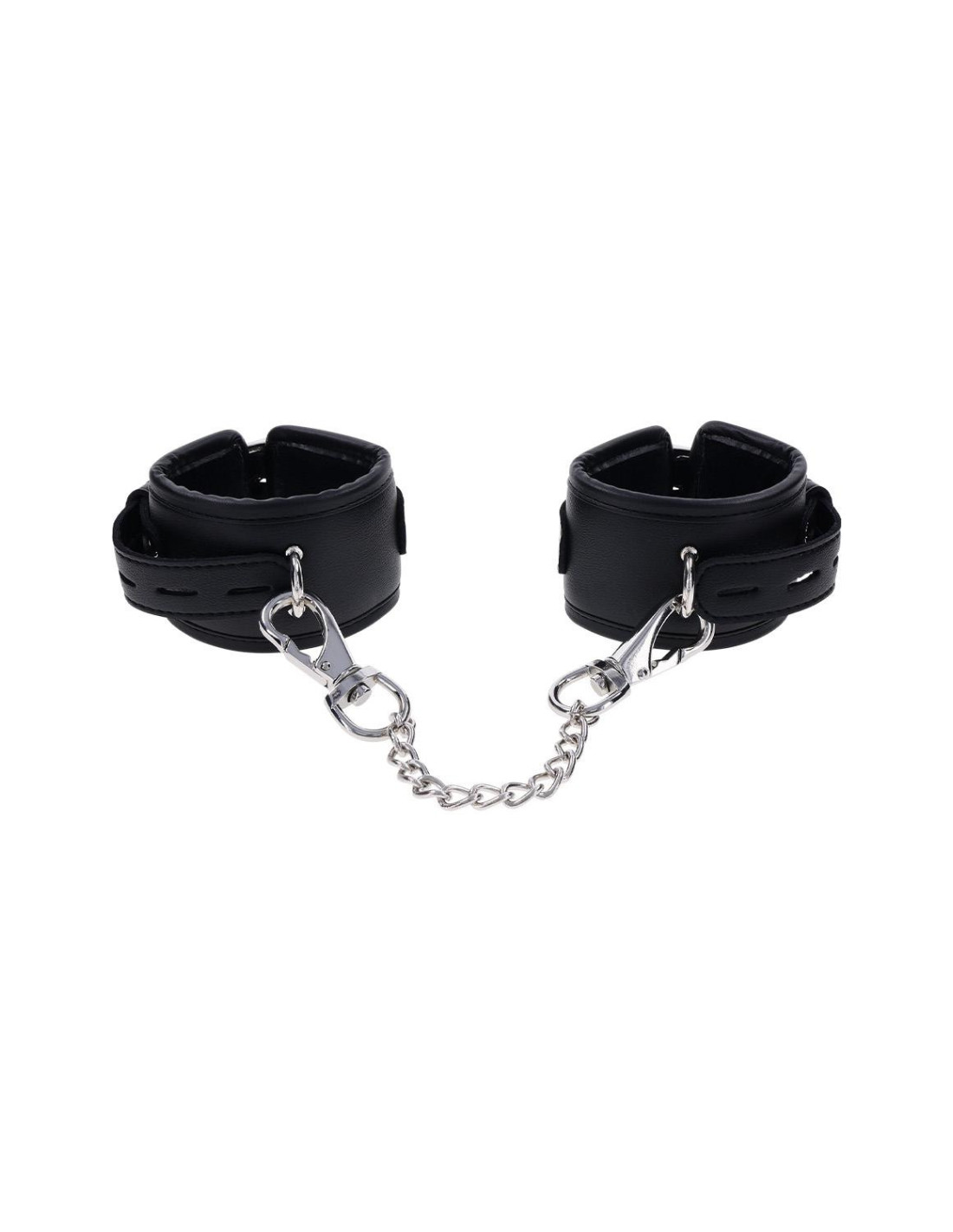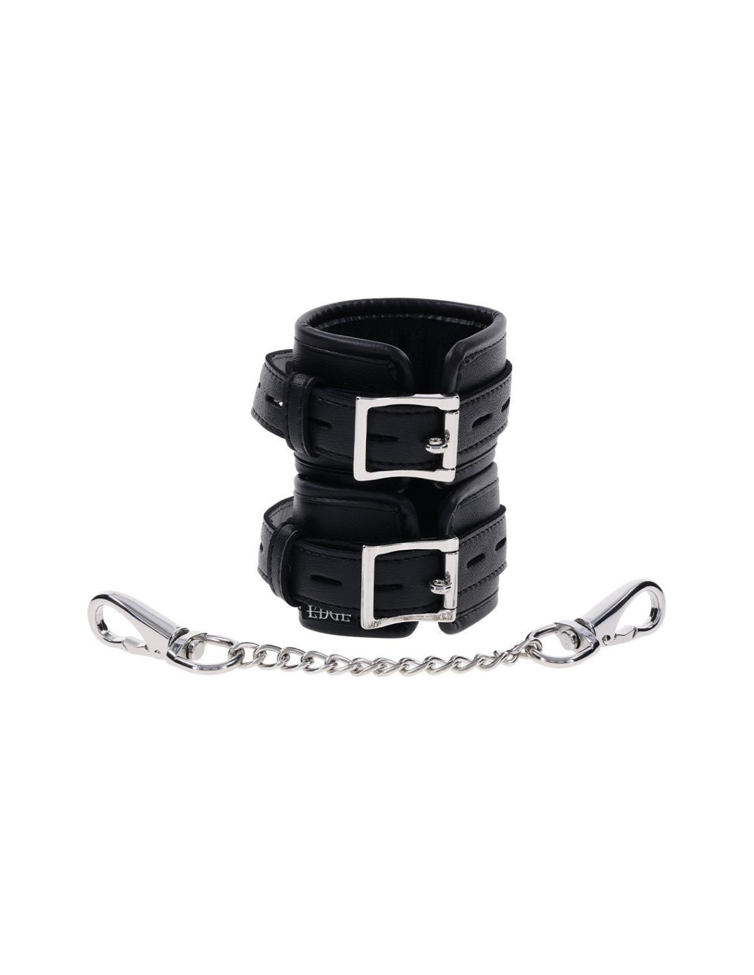 Take control with the Edge® Handcuffs, the perfect complement to your power play. These matching black cuffs are padded for comfort and durability, designed for extended wear and secure restraint. Featuring sleek silver metal hardware and reinforced stitching, they’re built to withstand even the most intense sessions. The adjustable buckle closure ensures a customizable fit, while a sturdy rings allow for versatile attachment to other restraints or bondage gear. Whether you're a seasoned pro or a curious beginner, the Edge® Handcuffs offer a perfect balance of comfort and control.Fits wrists from 5' to 11' / 12,7 - 27,9 cmRemovable metal tetheMaterials: 80% Polyurethane,7% Iron Alloy, 7% Zinc Alloy, 5% PU Foam, 1% Nylon