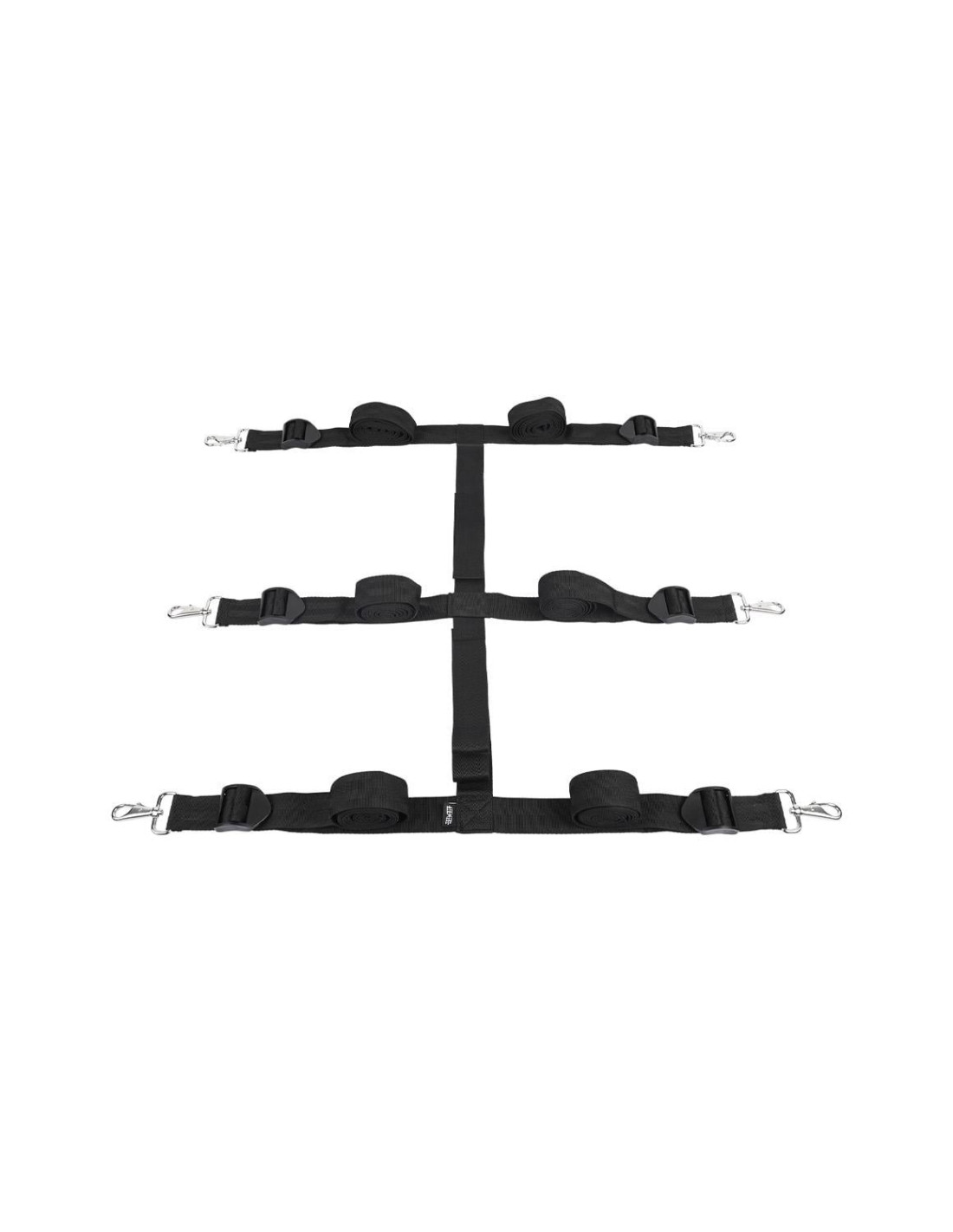 Unleash your deepest desires and dominate your lover with the Edge® Extreme Under the Bed® Restraint System. This quick-to-install bed bondage system transforms any bed into a dungeon of pleasure in minutes. Secure those limbs and take control, turning your partner's body into your personal playground. Perfect for home or on-the-go adventures, this versatile system fits any size mattress and can even be used around some doors. With six points of connection, you can attach cuffs, a collar, and more to create your ultimate fantasy scenario. The easy-on push clips promise unmatched strength and durability, ensuring your captive remains firmly in place no matter how wild your play becomes. Get ready to push the limits and indulge in the ultimate power exchange with Edge®.Quick Setup: Installs in minutes, transforming any bed into abondage playground swiftly.Six Connection Points: Equipped with easy-on push clips,providing multiple attachment options for cu s, collars, and more.Adjustable Middle Restraint Strap: Slides up and down themattress for ultimate positioning versatility.Limited Lifetime Warranty: Ensures long-lasting quality and peace of mind for your most daring adventures.Materials: 58% Polypropylene, 30% Steel, 12% POM
