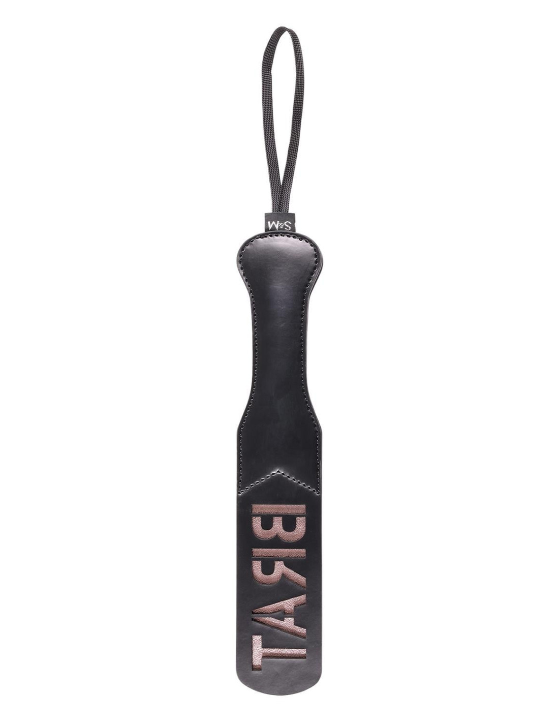 Have you been bad? Provoke them to leave their mark with the Brat Paddle, designed to imprint the word “BRAT” with delicious thuddy impact. Before you know it, you’ll be begging for another spanking. Multiple layers of high-quality, faux leather for added impactWrist loop for a quick grip or easy displayMaterials: 95% Polyurethane, 5% Polyester