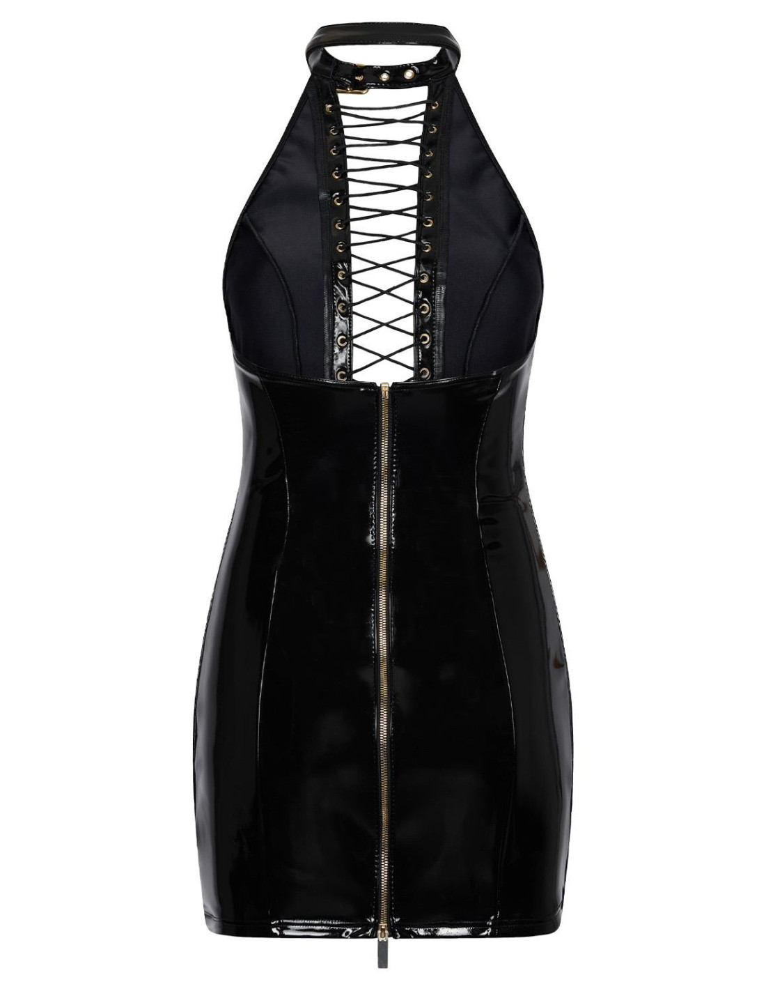 STRAPS AND MESH BRA, GARTER AND G-STRING SET BLACK, M/L