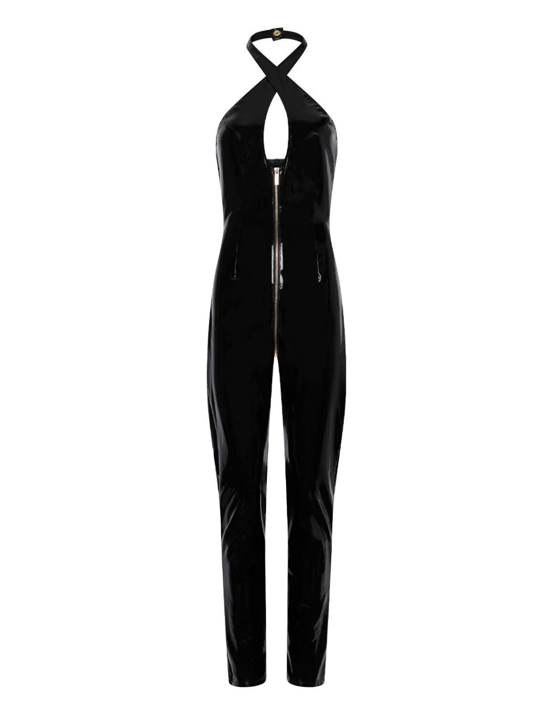 Soft Blaze Catsuit – Sleeveless Catsuit with Front & Partial Back Zipper Ignite Elegance. Fuel Desire. The Soft Blaze Catsuit is where sculpted design meets seductive energy. Crafted from premium Datex, this sleeveless catsuit embraces the body with a sleek, second-skin fit, while the criss-cross halter neckline and keyhole detail create a visual focal point that draws attention, and holds it. A gold-toned zipper runs from front to back, offering just enough reveal to stir curiosity and just enough coverage to stay in control. Whether worn to dominate the night or define a private moment, this catsuit is a statement of movement, power, and presence. Slip in. Zip up. Let the spark become a blaze. Features: Premium Datex for a glossy, sculpting silhouette Criss-cross halter neckline with a daring keyhole accent Gold front and partial back zipper for adjustable allure Sleeveless cut for freedom and bold movement Designed to command attention and radiate confidence Available Sizes: S, M, L, XL Perfect for retailers seeking elevated fetish wear and empowered fashion, the Soft Blaze Catsuit offers a refined yet provocative design that transitions effortlessly from show-stopping to unforgettable.