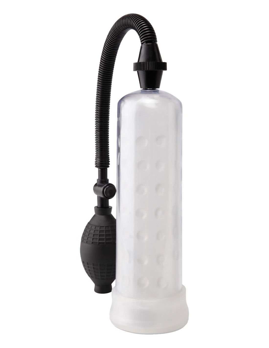 With each squeeze of the medical-style pump ball, your pleasure rod will grow bigger, thicker, and swell with power. Once you penetrate the smooth, flexible PVC opening, you'll discover throbbing, rock-hard erections that feel great and last longer! The clear vacuum tube allows you to watch your cock grow, and the quick-release valve relieves pressure with a push of the button. Choose a speed on the vibrating bullet and enjoy extra stimulation while you pump up your pleasure rod.