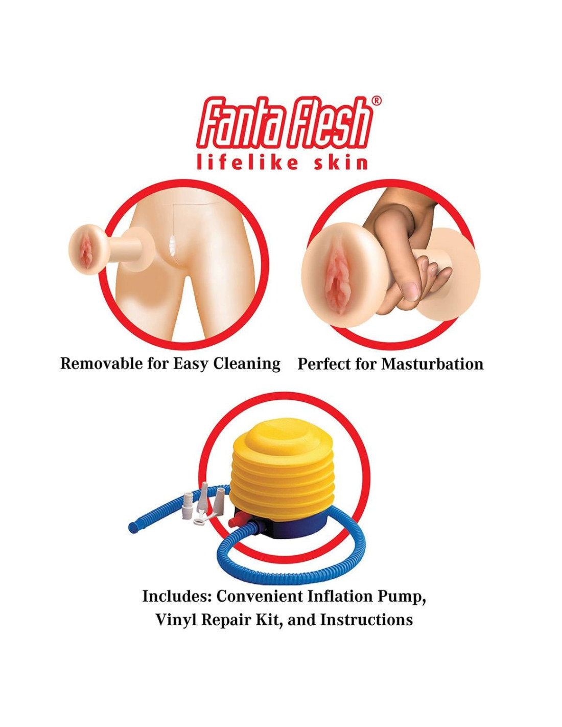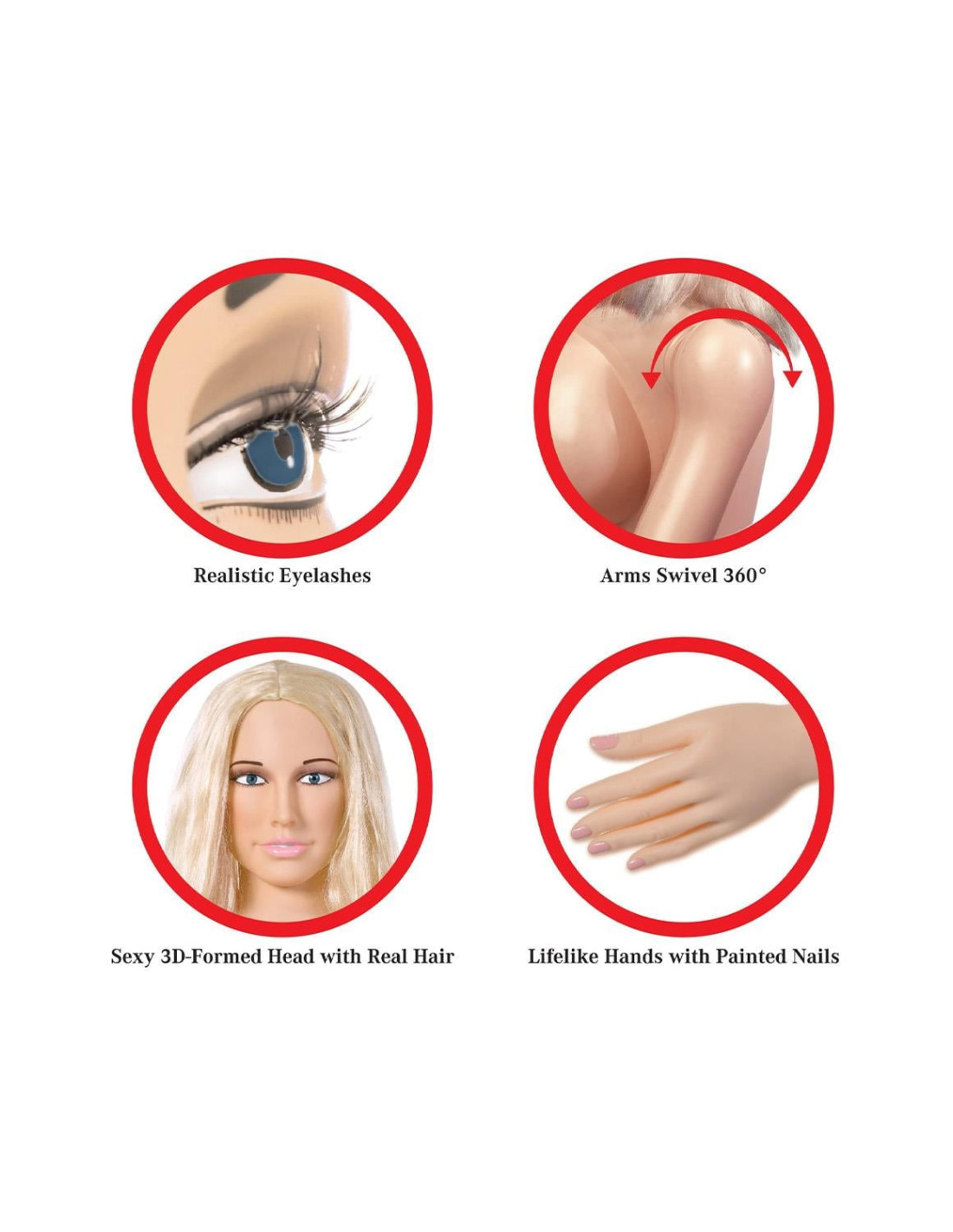 This incredible Hannah Harper life-size inflatable love doll was meticulously designed with realistic features for a truly lifelike experience. Her sexy 3D formed head features realistic eyelashes and a luxurious head of real hair that's begging to be pulled! Watch her really come to life with arms that swivel 360 degrees and delightfully painted finger and toenails. Give her firm and perky breasts a squeeze while you enjoy her ultra-lifelike Fanta-Flesh skin, pussy, and ass that feels even better than the real thing! The Fanta-Flesh pussy and ass are removable for easy in-depth cleaning, and can even be enjoyed separately for masturbation.