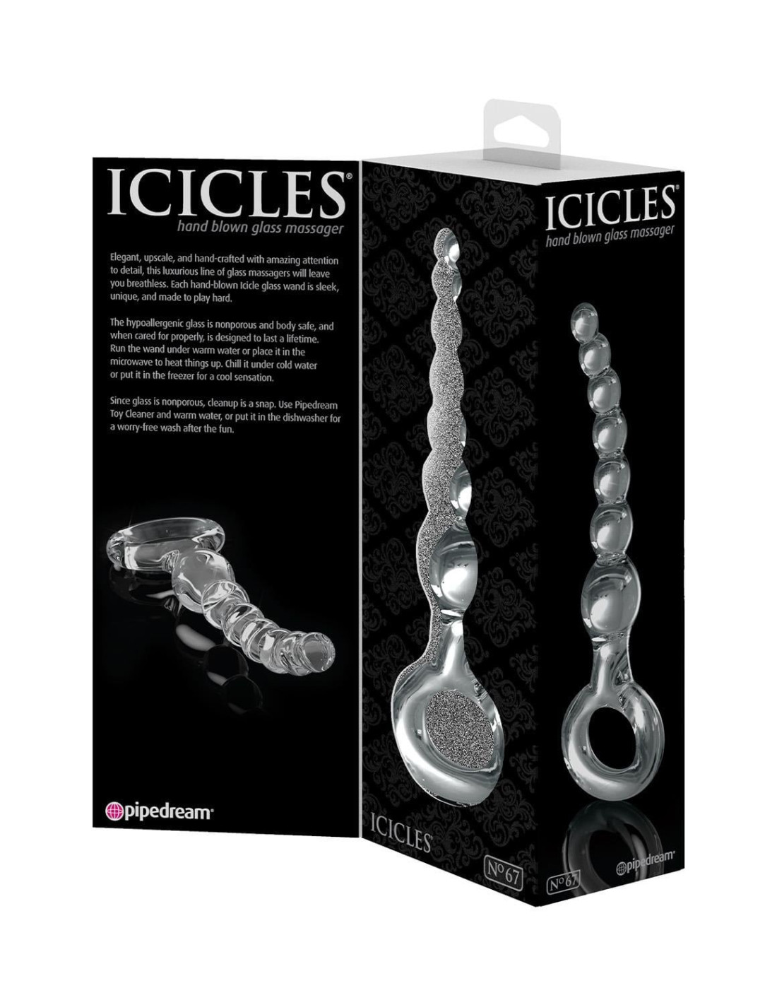 Elegant, upscale, and hand-crafted with amazing attention‚ to detail, this luxurious line of glass massagers will leave‚ you breathless. Each hand-blown Icicle glass wand is sleek, unique, and made to play hard. The hypoallergenic glass is nonporous and body safe, and when cared for properly, is designed to last a lifetime.
