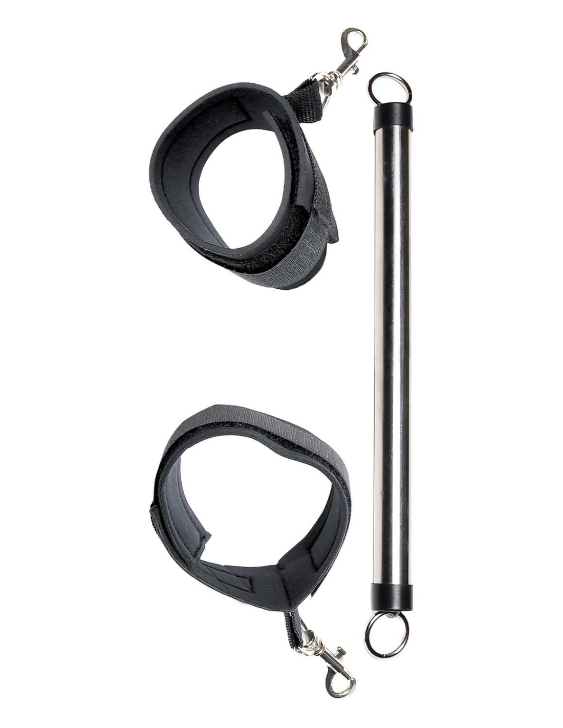 Open wide! This beginner's metal Spreader Bar will put you or your partner in the right position for pleasure every time. Attach the adjustable ankle cuffs and your subject won't be able to close their thighs. Try new positions and scenarios you never dared, and do it all with easy access. They'll squirm around and squeal, but they won't get out! The detachable cuffs have a comfortable soft-neoprene inner lining thats easy on the ankles. ‚¬Å“I've never seen one of these before½, I admitted, half embarrassed, half intrigued. ''Relax and spread your legs wide open, this thing is harmless'', he said as he gently cuffed each of my ankles into the soft neoprene restraints. The sleek metal rod separates both of my thighs and prevented them from closing, leaving me trembling in anticipation and open for anything.