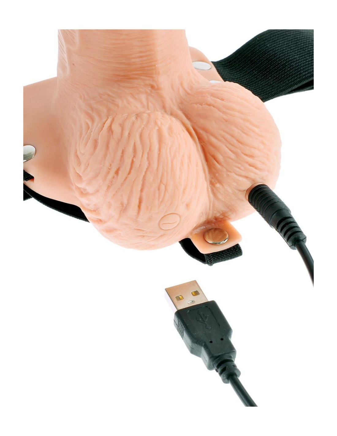 Have you always wanted to feel more confident about your size and enjoy satisfying sex with your partner long enough for both of you to reach orgasm? Your lover knows that size matters and nothing can fulfill fantasies and please a partner like a confident man that knows what he's doing! Now you can have the length and girth you've always dreamt of and be all the man you can be with the Fetish Fantasy Series® 7½ Hollow Rechargeable Strap-On with Remote. Say goodbye to embarrassing midway let downs and say hello to a satisfying smile from your lover! The comfortable elastic harness easily adjusts to fit most sizes, while the 7½ lifelike dildo hits the right spot every time. It's perfect for men with ED, premature ejaculation problems, or couples looking to add a little flair to their fun. Best of all, you can still enjoy hot, face-to-face sex and ensure that both of you get off together! The rechargeable hollow strap-on is ready to go when you are. The convenient remote control allows you or your partner to control the powerful vibrations. Press and hold the button on the remote control or the left testicle for three seconds to power on, then press the button again to cycle through ten thrilling pulsation patterns. The super-strong motor is powered by a long-lasting lithium-ion battery and delivers thrilling, multi-speed vibrations at the tip of the dildo precisely where your partner wants them most. The dildo is compatible with both water-based and silicone-based lubricants. Clean up is a snap after the fun with Pipedream toy cleaner and warm water. The included USB charging cord works with most USB power sources. Comfortable elastic harness Lifelike dildo Rechargeable