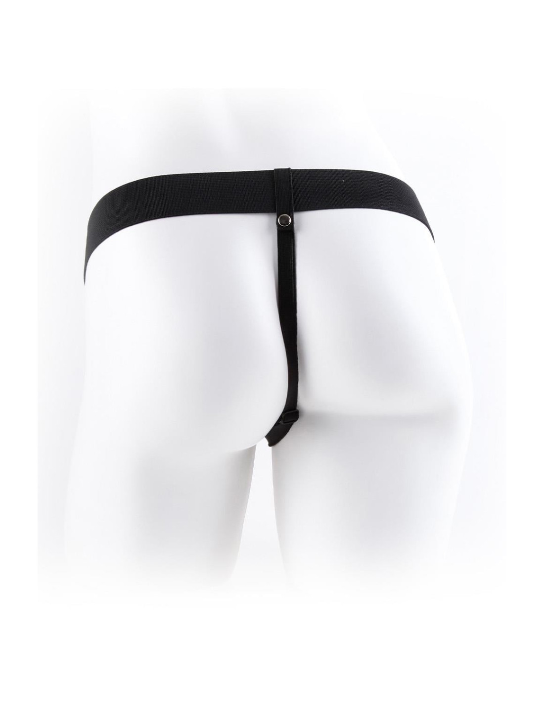 Now you can have the length and girth you've always dreamt of and be all the man you can be with the Fetish Fantasy Series® 9'' Vibrating Hollow Strap-On with Balls. Say goodbye to embarrassing midway letdowns and say hello to a satisfying smile from your lover! The comfortable elastic harness easily adjusts to fit most sizes, while the 9'' phthalate-free PVC dildo will hit just the right spot every time. It's perfect for men with ED, premature ejaculation problems, or anyone looking to simply add a little something extra to their next encounter. Best of all, you can still enjoy hot, face-to-face sex and ensure that both of you get off even if he's already finished or can't get it up! Choose a speed that's right for you and let the powerful vibrations whisk you away! A super-strong multi-speed bullet delivers thrilling vibrations at the tip of the dildo precisely where you want them most, and our exclusive hands-free waistband clip allows you to keep the controller by your side and out of the way of the fun. The dildo is compatible with both water-based and silicone-based lubricants. Cleanup is a snap after the fun with antibacterial cleaner and warm water.