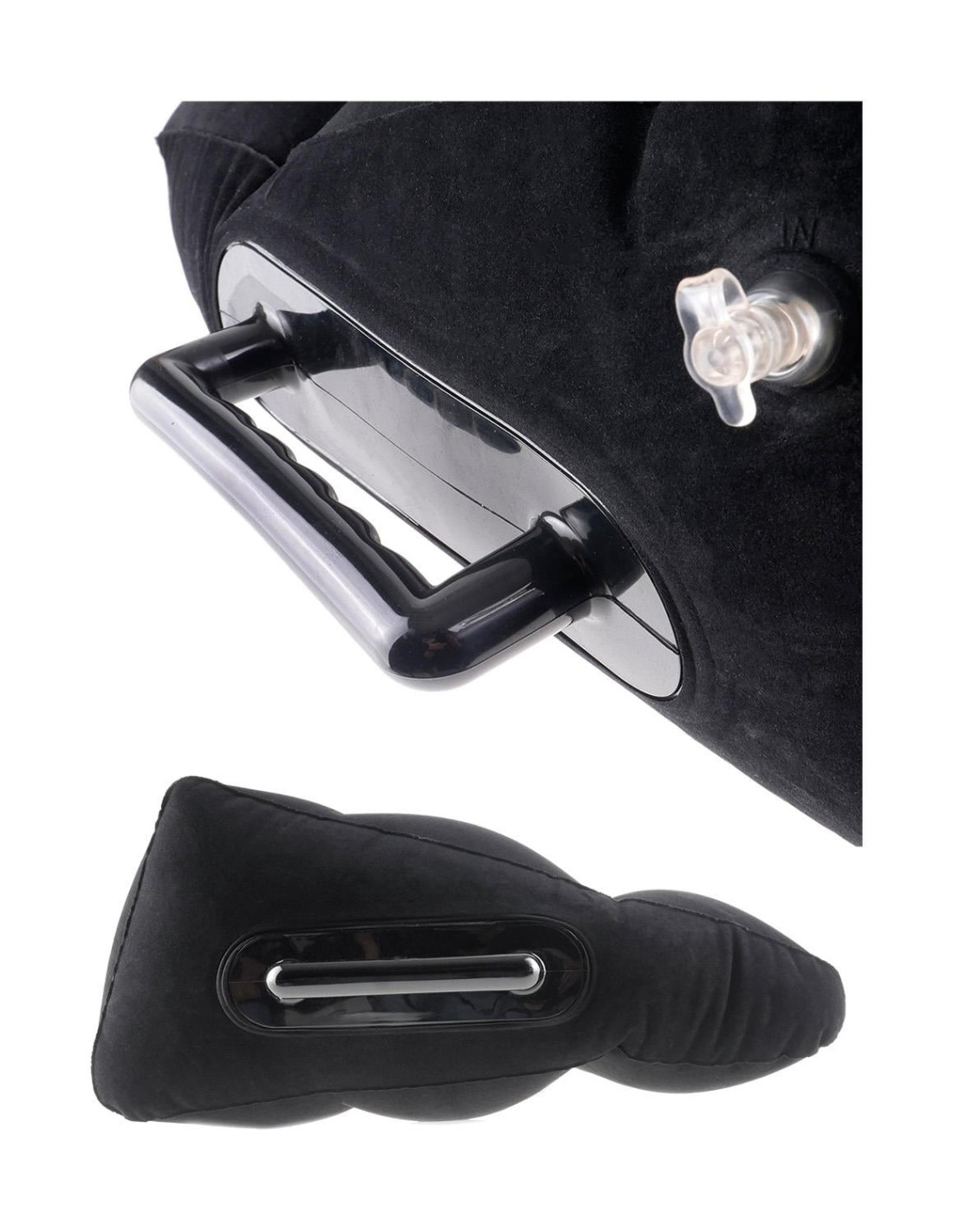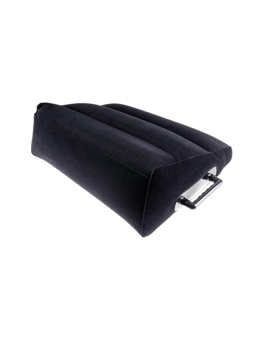 Indulge in your wildest fantasies with this Inflatable Position Master. The slanted, flocked design allows you to relax in any position without sliding off, while the EZ-Grip love handles are perfect for maintaining difficult positions without losing your rhythm. The air seal valve makes inflating the wedge a snap, and when the fun is over, simply deflate the Position Master and it's ready to go where you go. It's perfect for those romantic getaways and no one will know whats in your bag! Do it all with greater ease...no matter what position you're in! And lubricant doesn't even show up on the surface making it easy to clean, too!Holds up to 300 lbs. Inflated dimensions are 8'' tall tapering down to 3'' tall, 16'' long, end to end, and 23'' wide.Includes:Inflatable Position Master with EZ-Grip Handles