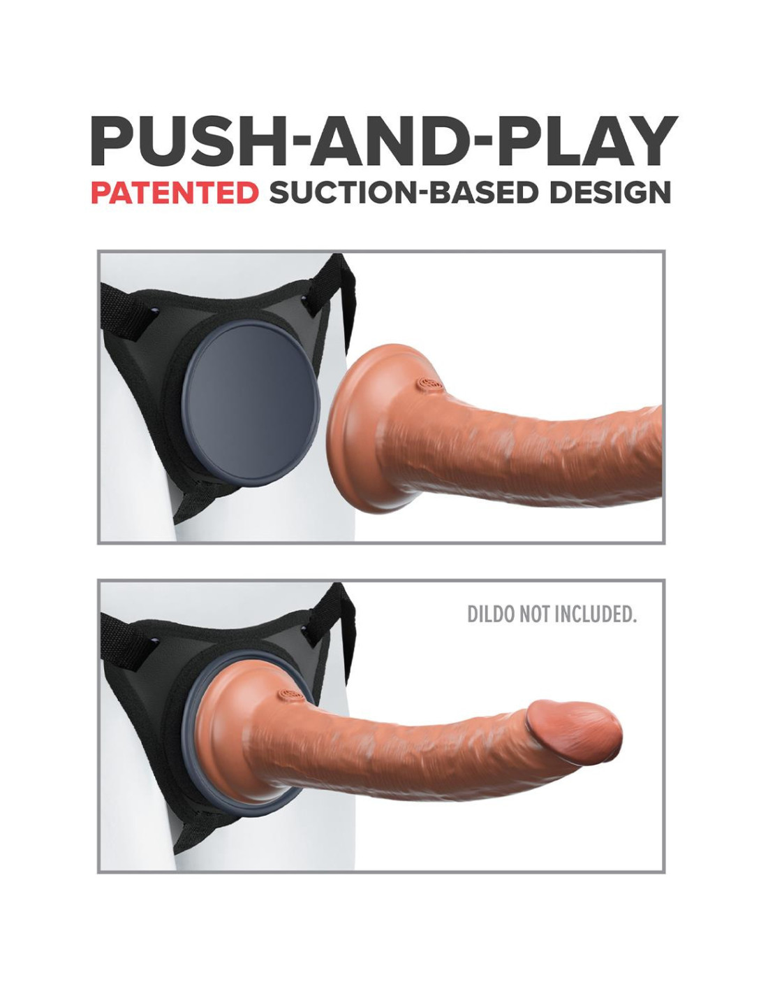 No Rings. No Snaps. No Hassle! PUSH-AND-PLAY Patented Powerful Suction Design! The patented Body Dock® Elite takes strap-on play to a whole new level! It features a premium silicone docking plate that conforms to the shape of your body for the ultimate fit. Also included are adjustable side-release buckles and padded back support. Changing your favorite strap-on accessory has never been faster or easier! It’s as simple as attaching the suction cup on your favorite dildo or vibrator to the docking plate, while the nylon straps easily adjust to fit most sizes and body types. Best of all, it works with most dildos on the market today, including some you may already own. No rings. No snaps. No hassle! Patented Suction-Based Design Push and Play! Simply push the suction cup of your favorite dildo or vibrator against the concave suction dock until ALL of the air between them is released! The suction creates a super-strong bond with no need for rings or snaps! The Angled Suction Plate Keeps your Dildo Erect The Body Dock® features an angled suction dock to help counteract sagging caused by traditional harnesses, keeping everything looking as natural & true to life as possible.
