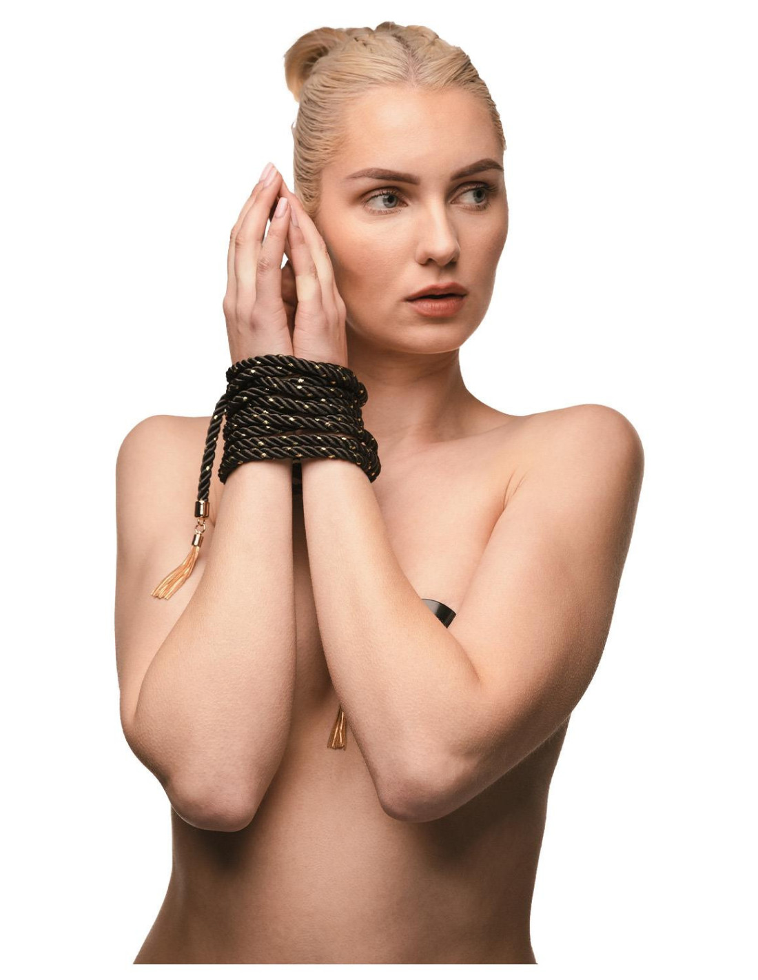 Elegant tassel accents and a belt-style closure for easy storage add a touch of sophistication to this sensual accessory, making it a beautiful addition to any restraint kit. Whether used for playful surrender or elaborate binds, the Embrace Rope invites creativity, connection, and the art of slow anticipation.
