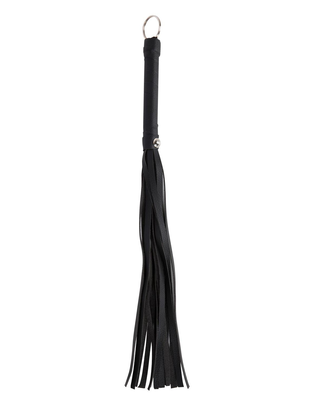 The black tassel flogger has leather look strings made of PU.A metal O-ring is attached to the easy grip handle.An item from the Guilty Pleasure BDSM collection.Total length: 39.5 cm / 15.6 inch.Length of handle (excl. ring): 11 cm / 4.3 inch.