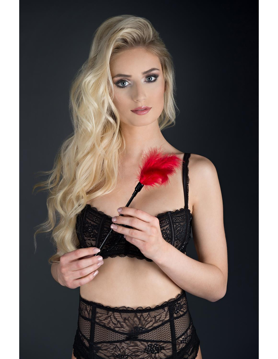 Small red feather tickler on a wand.Great for teasing or tickling.Total length: ca 32 cm / 12 inch.Length of handle: 22 cm / 8.6 inch.