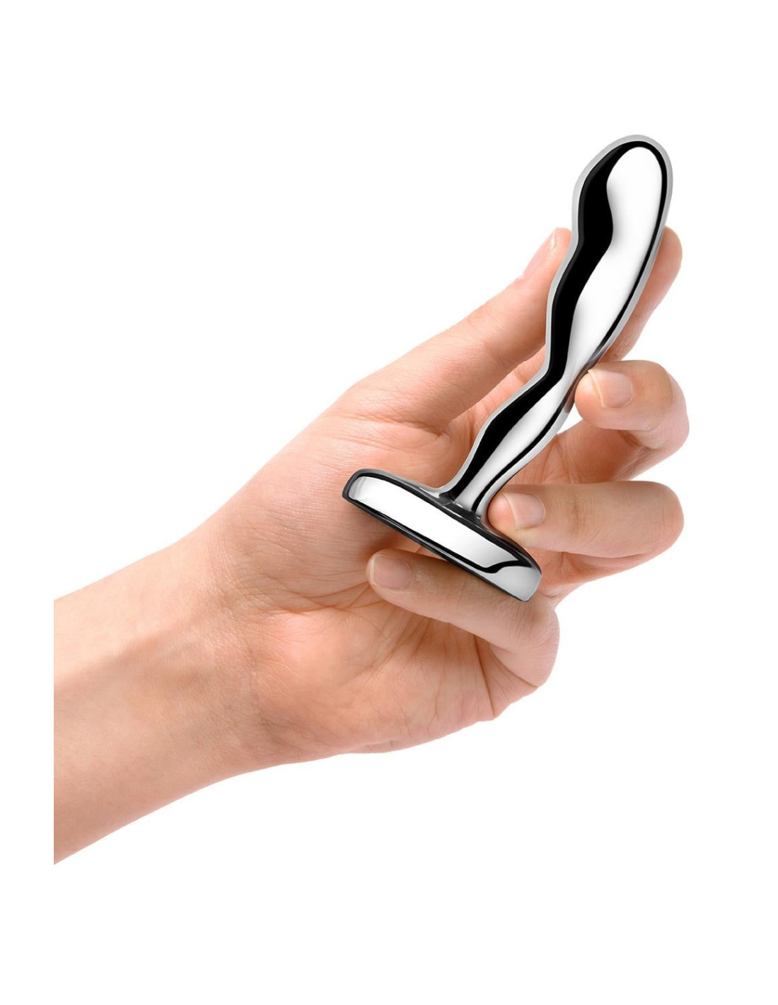 Treat your P-Spot to a platinum celebration with the new b-Vibe Stainless Steel Prostate Plug!Perfectly curved and weighted, this hefty stainless steel plug slides in smoothly, hugging every curve of your sphincter up to the prostate with a sleek, smooth body. This 100% steel butt plug is body-safe, easy to clean, and compatible with all lubricants. It's just one of the heavy-filling plugs alongside the Anal Beads and P-Spot Training Set from the b-Vibe Stainless Steel Prostate Collection.Slide directly to your pleasure zone with b-Vibe's Stainless Steel Prostate Plug.Designed for prostate playCurved and swerved to pinpoint the prostate, this toy glides directly to your pleasure zone so that you can focus on the pleasure and not the aim.100% stainless steelFrom our first line of anal toys made of 100% stainless steel, this plug is super easy to clean, hypoallergenic, and compatible with all lubricant types. Train up your capASSity with the 300 gr pounds of weighty filling sensations.Safe for watersportsThis plug is 100% waterproof and ideal for temperature play. Slide it in during a bath, put it in the fridge, or run it under warm water for an endless variety of sensations.Anal friendly tapered baseEasy to cleanHypo-allergenic and body-safeWaterproofSafe for use with all lubricantsWeight: 0.66 lbs / 300 gTotal Size: 4.55 inch / 11,55 cmInsertable Size: 4.2 inch / 10,66 cmWidest Insertable Diameter: 0.98 inch / 25 mmBase Diameter: 2.27 inch / 5,77 cmBase Size: 0.57 inch / 1,35 cmMaterial: Stainless SteelWaterproof: 100%Lube: Compatible with all lubricantsInstructions: Clean with soap and water, in the dishwasher, or boil them for 3 to 4 minutes to fully disinfect.