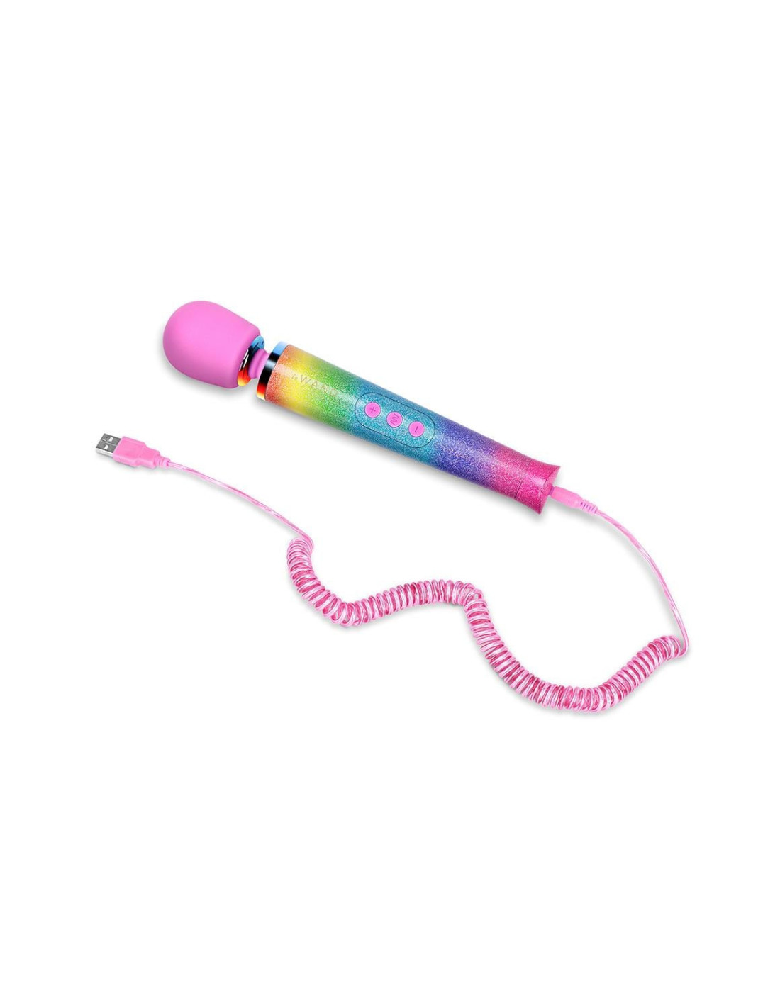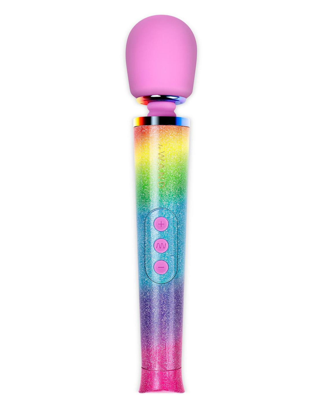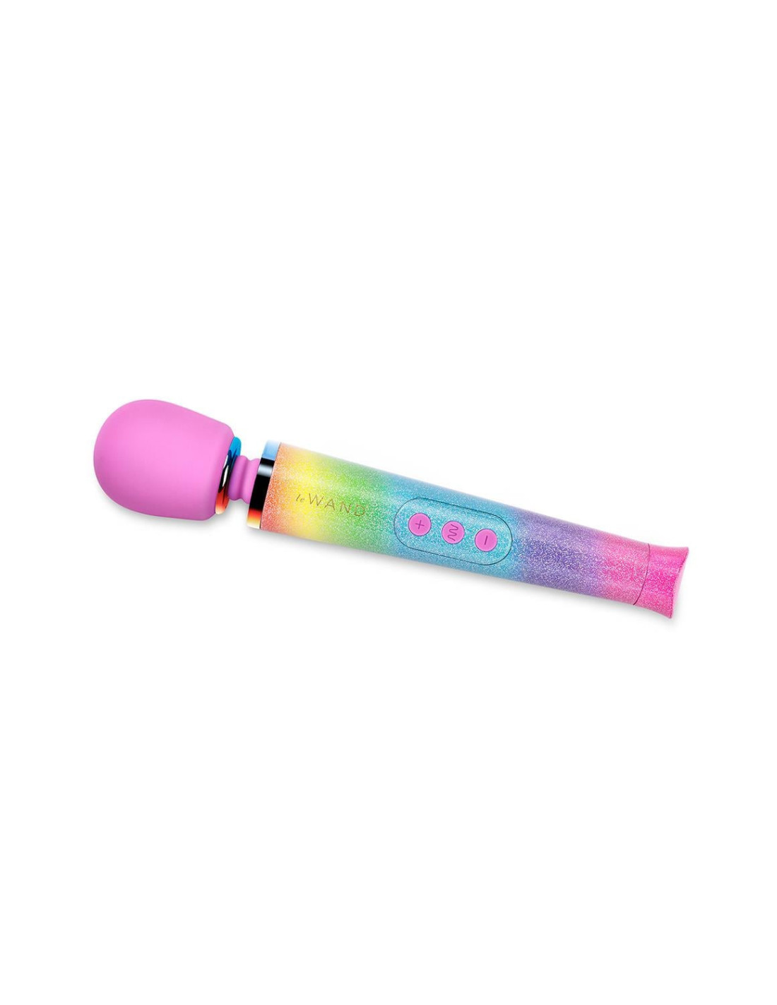 Vibe on a ride over the rainbow with the new Le Wand Rainbow Ombre Petite Massager! Glimmer and gleam with this limited edition of our Le Wand Petite, that's as pretty as it is portable and powerful.Since launching the All That Glimmers Collection has mesmerized wand enthusiasts with its dazzling, glittery tones. With the new Rainbow Ombre tone, we're pleased to offer folks a powerful tool to empower their pleasure-seeking in yet another fun colorway to identify with.In addition to the bestselling Le Wand Petite wand massager, the limited edition All That Glimmers Rainbow Ombre 7-Piece Collection comes with:A Guide to Wand UseA coiled Glimmer Charging Cord in a metallic pink colorSparkly Travel CaseRainbow Glimmer Nail PolishRainbow Glimmer Body GelA set of Metallic Temporary TattoosSpecifications:Made of body-safe silicone & ABSHeight 25,4 cmDepth 4,7 cm Width 4,7 cmDiameter 4,35 cm Neck diameter: 1,88 cmWeight 215 grRechargeableCharging time 2 hoursUse time 1 hourMax noise level < 72 dBInterface 3 button controlIntensity levels: 10Vibration modes: 6Battery Voltage = 3.7VMotor RPM No loading = 6,900RPM + / - 10% ('No loading” means the motor is tested without the counterweight, so the motor spins faster)Motor RPM Loaded = 6,000RPM + / - 10% ('Loaded' means the motor is tested with the counterweight, so the motor spins slower)Download Le Wand product overview wands and attachments.pdf