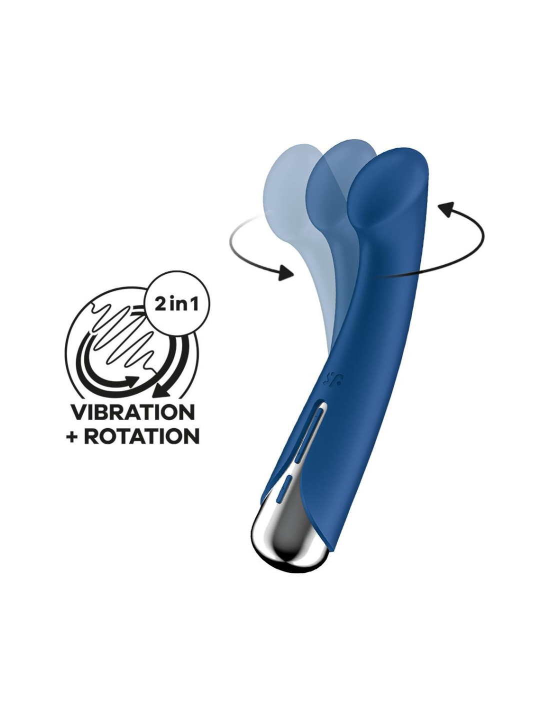 The new Satisfyer Spinning series is sure to spin your head right round: The Satisfyer Spinning G-Spot 1 is a G-spot vibrator that both vibrates and rotates to give you an excitingly new and pleasurable experience. G-spot stimulation through rotation and vibration. Ideally designed to hit the G-spot for intense stimulation. Thanks to its waterproof (IPX7) finish, this toy can be used safely in water and is easy to clean. Body-friendly siliconeWaterproof IPX712 vibration programs5 rotation settingsWhisper modeEasy to cleanRechargeable Li-ion batteryMagnetic USB charging cable includedSatisfyer Spinning G-Spot 1: Rotating G-spot vibratorYou certainly won't get bored with the Satisfyer Spinning G-Spot 1: in addition to 12 varied vibration programs, this beautifully designed love toy comes with an additional rotation feature to tease your vaginal sweet spot. The spinning, rhythmic motion combined with the vibrator's flattened tip provide perfect G-spot stimulation. And you choose the speed and direction yourself, as the Satisfyer Spinning G-Spot 1 offers 5 different rotation programs that change direction with a double-click on the rotation button. You can also decide for yourself whether you want to combine rotation and vibration or use them separately, because the two programs can be controlled independently – using the buttons on the front, you can easily and intuitively select the programs that you like best.Satisfyer Spinning G-Spot 1: Waterproof IPX7 G-spot vibratorEven though the Satisfyer Spinning G-Spot 1 was specifically designed for G-spot stimulation, other hotspots can of course also enjoy its vibrations. Use it as a lay-on vibrator and stimulate your clitoris or nipples with the circular movements. The surface of the Satisfyer Spinning G-Spot 1 is made of soft silicone to enhance the sensual experience when using this G-spot vibrator. Waterproof (IPX7), you can also enjoy it in the shower or bathtub. The Satisfyer Spinning G-Spot 1 is rechargeable with the included USB charging cable and can be easily cleaned with water, mild soap and a little toy cleaner.