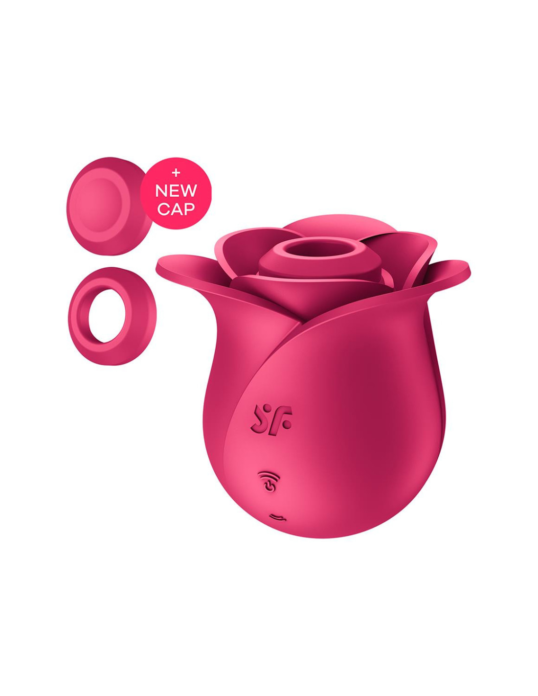 Let your desire blossom like never before and elevate your solo time with the Satisfyer Pro 2 Modern Rose, a pressure wave vibrator that seamlessly blends modern aesthetics with the power of Satisfyer’s technologies. Its sleek and innovative design takes inspiration from the beauty of a blossoming rose, making it not just a love toy but a work of functional art. The Satisfyer Pro 2 Modern Rose features the beloved Satisfyer Air Pulse Technology as well as the new and extraordinary Satisfyer Liquid Air Technology. Choose the Air Pulse cap for touch-free clitoral pleasure or the Liquid Air cap with its petal-thin membrane, mimicking the sensual surge of pulsing water. Whether you crave a gentle touch or deep, invigorating pulses – choose your favorite setting from 11 pressure wave intensities. The benefits of the Satisfyer Pro 2 Modern Rose don't just stop at its chic appearance – made of soft silicone, it doesn’t have any thorns but feels super gentle on your skin. It's also fully waterproof (IPX7), inviting you to immerse yourself in a world of tranquil relaxation. Picture yourself in a soothing bath or embracing the calming flow of a shower while the Pro 2 Modern Rose's elegant, rose-inspired design stimulates your clitoris and indulges your senses. Treat yourself to the Satisfyer Pro 2 Modern Rose and discover the beauty of Satisfyer’s innovation – this rose is waiting to be picked by you!Satisfyer Pro 2 Rose design - where nature's beauty meets