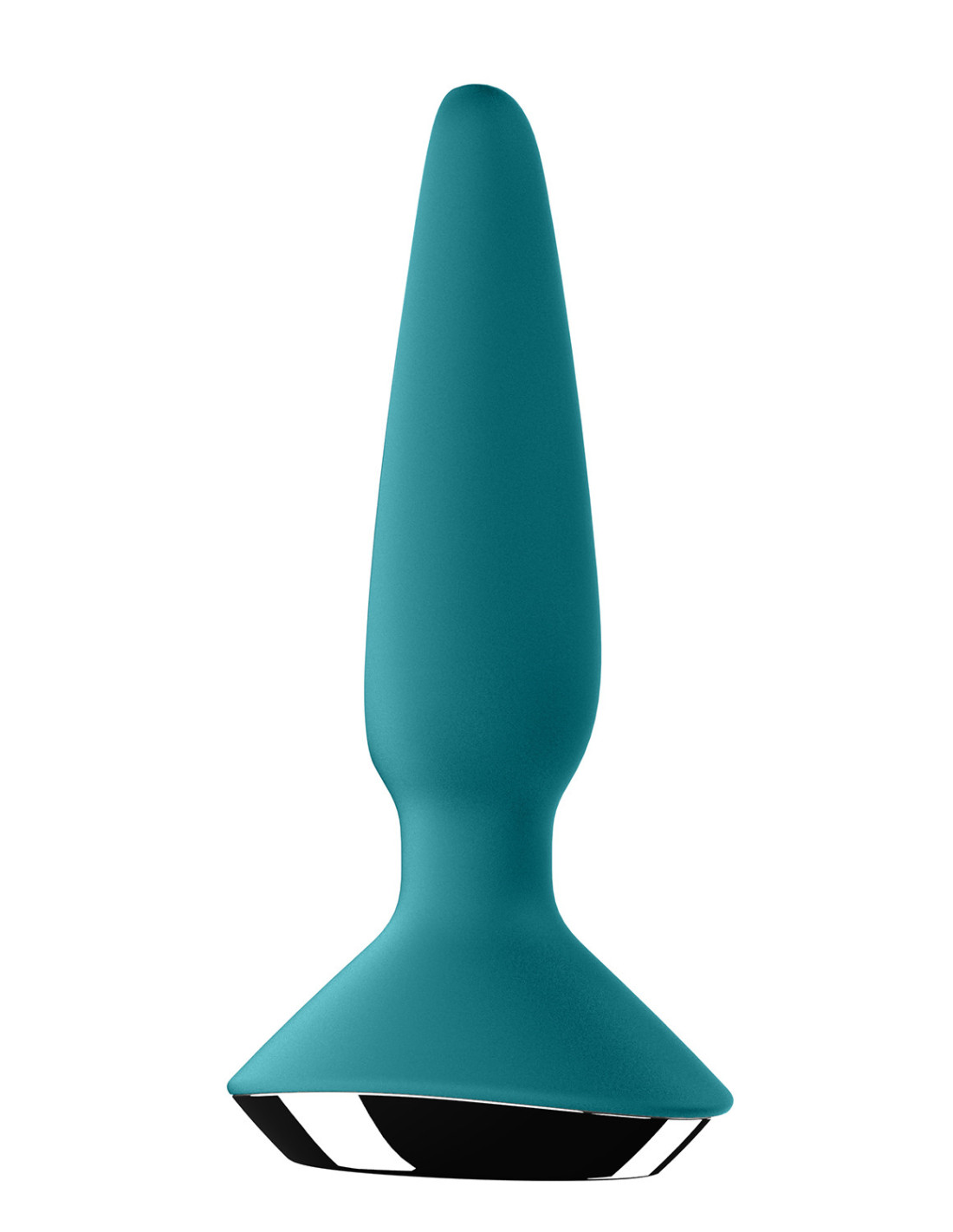 with unlimited control using Satisfyer Connect!The deep vibrations of the plug are driven by 2 motors that can be controlled intuitively via app. The Plug-ilicious 1 will also impress you with its soft silicone surface, conical shape and secure wide base. Compatible with the free Satisfyer App - Available on iOS and Android. The 2 motors can be controlled separately, allowing for numerous vibration combination options. Suitable for all genders. Sensual prostate massage with the Satisfyer Plug-ilicious 1Enjoy seductive backdoor stimulation with the Satisfyer Plug-ilicious 1. The anal vibrator is made of soft, body-friendly silicone and is easy to insert - and the wide base ensures a safe time when you’re having fun. With its conical shape and rounded tip, the anal vibrator can be used for men and women. Since the Plug-ilicious 1 is waterproof (IPX7), it can also join you in the shower or bathtub - and can be cleaned easily with warm water and mild soap.We always recommend the use of a water-based lubricant for backdoor action. Satisfyer's lubricants are available in different versions and are the ideal complement for anal play.Vibrating butt plug with app controlThe Plug-ilicious 1 also offers you the option to control it by app with the new Satisfyer Connect App. The app not only allows you or your partner to remotely control this pleasure-bringer from anywhere in the world via the Internet - you can also create your own vibration programs or link the app to your Spotify account. The possibilities are endless! The app is available for Android, iOS and Apple Watches.After enjoying yourself, you can recharge the integrated batteries in your Plug-ilicious 1 with the included USB charging cable.Anal vibratorTapered shapePointed tipOne side is flattenedWith two powerful motorsSuper-strong deep vibrationUseable with free Satisfyer Connect AppThe app offers an unending range of programmesPreset programmes can be editedCan also be used without the appWhisper modeRechargeableMagnetic USB charging cable includedMade of body-friendly siliconeEasy to clean Waterproof IPX7Length 13,5 cmHeight 4,3 cmWidth 6,8 cmWeight 82,88 gr