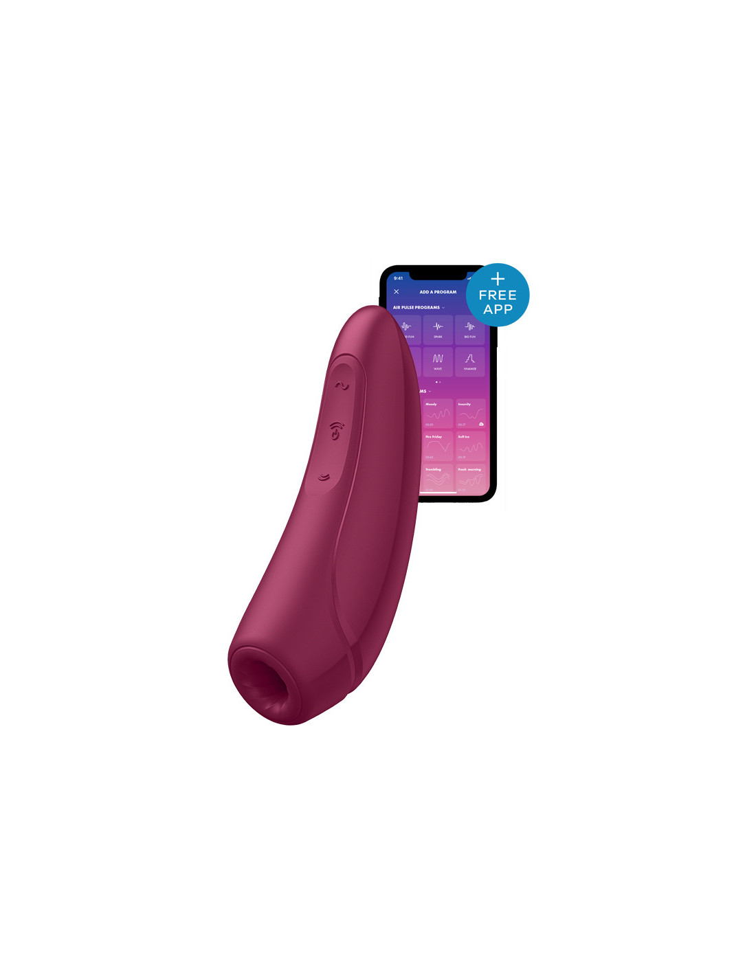 The Satisfyer Curvy 1+ is a revolution among Satisfyer vibrators. This little gem not only offers an exciting combination of intense pressure waves and varied vibration programs, it can also be controlled with a GDPR-compliant app with high privacy. Thanks to its ergonomic shape, the Satisfyer Curvy 1+ fits comfortably in your hand. It’s also waterproof (IPX7), so it can titillate you with pressure waves and vibrations with its velvety soft head in and out of the water. The elegant design and sophisticated look in Bordeaux red also make it a companion you would want to show to everyone.The new Satisfyer Connect App is available for all operating systems – both Android and iOS, including Apple Watch. It’s free and will surprise you again every month with its exciting functions.The app connects via Bluetooth or internet and controls your clit vibrator with breathtaking vibration combinations. It works as a remote control and can use your cell phone microphone to turn ambient noise into vibrations or transfer entire Spotify Playlists to your clitoris with breathtaking rhythms. The app meets the strict requirements of the German and European data protection laws. That means only you have access to the app and can enjoy yourself without disturbances. Of course you can also let your partner control the app for extra tingling experiences or let other users control your Satsifyer in video chats. Once your Satisfyer Curvy 1+ is exhausted, you can recharge it easily with the included USB magnetic charging cable. This pleasure-giver will provide you with a uniquely exciting time – alone, with your partner, or in video chat.Ergonomically designed clitoral stimulatorCombining pressure waves along with added vibrationsWhisper modeRechargeableWaterproofCompatible with any Android or Apple smartphone, tablet and Apple watchUnending range of program with the Satisfyer app (Can also be used without)Dimensions: 13,4 x 4,6 x 7,7 cm