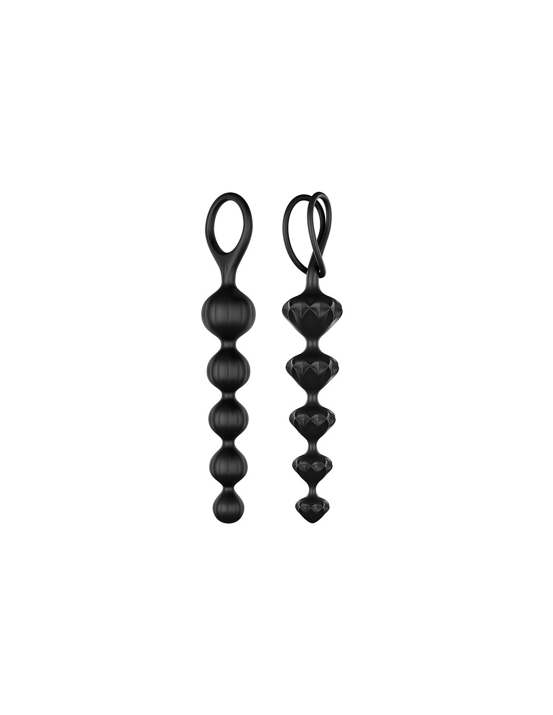 Bead up your love life and dive into a world of sensual anal adventures with the Love Beads. Whether you use them for steamy solo sessions or want to introduce them to your love life as a couple: you can’t go wrong with these seductive joy bringers. They come in a sensual set of two and want to make you and your back passage happy. Thanks to their ascending shape and rounded tips, these 5-piece bead chains are ideal for newcomers to anal training and those who wish to explore anal pleasures: the smallest element of the pink chain is 2 cm in diameter, while the largest is 3.4 cm. In the diamond-shaped chain, the diameters range from 2.1 to 3.7 cm - in other words the chains have been designed to get slowly bigger. Experience the tingling excitement as you pull the chain out bead by bead, stimulating your back passage in an arousing way. Thanks to the practical strap, you can indulge in carefree sensual adventures.Ideal for beginners & anal training2 Sensual structuresIncreasing diameterSupport rings for safe pleasureSkin friendly soft siliconeEasy to cleanDimensions: 2,8 x 20,5 cm and 3,3 x 20,5 cm