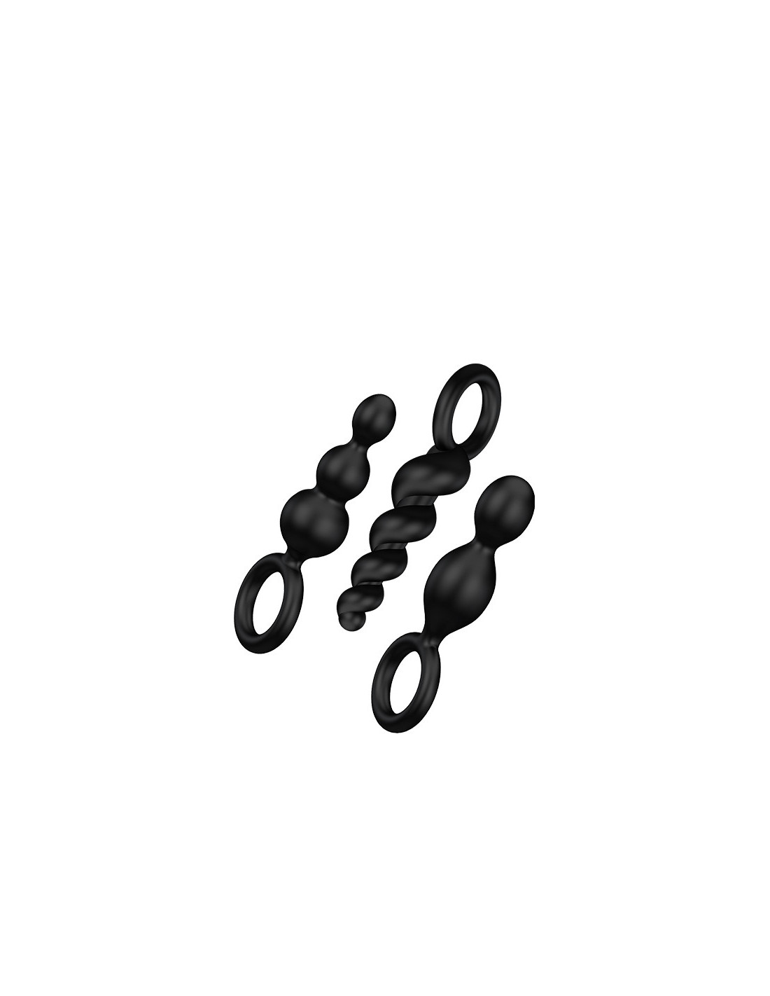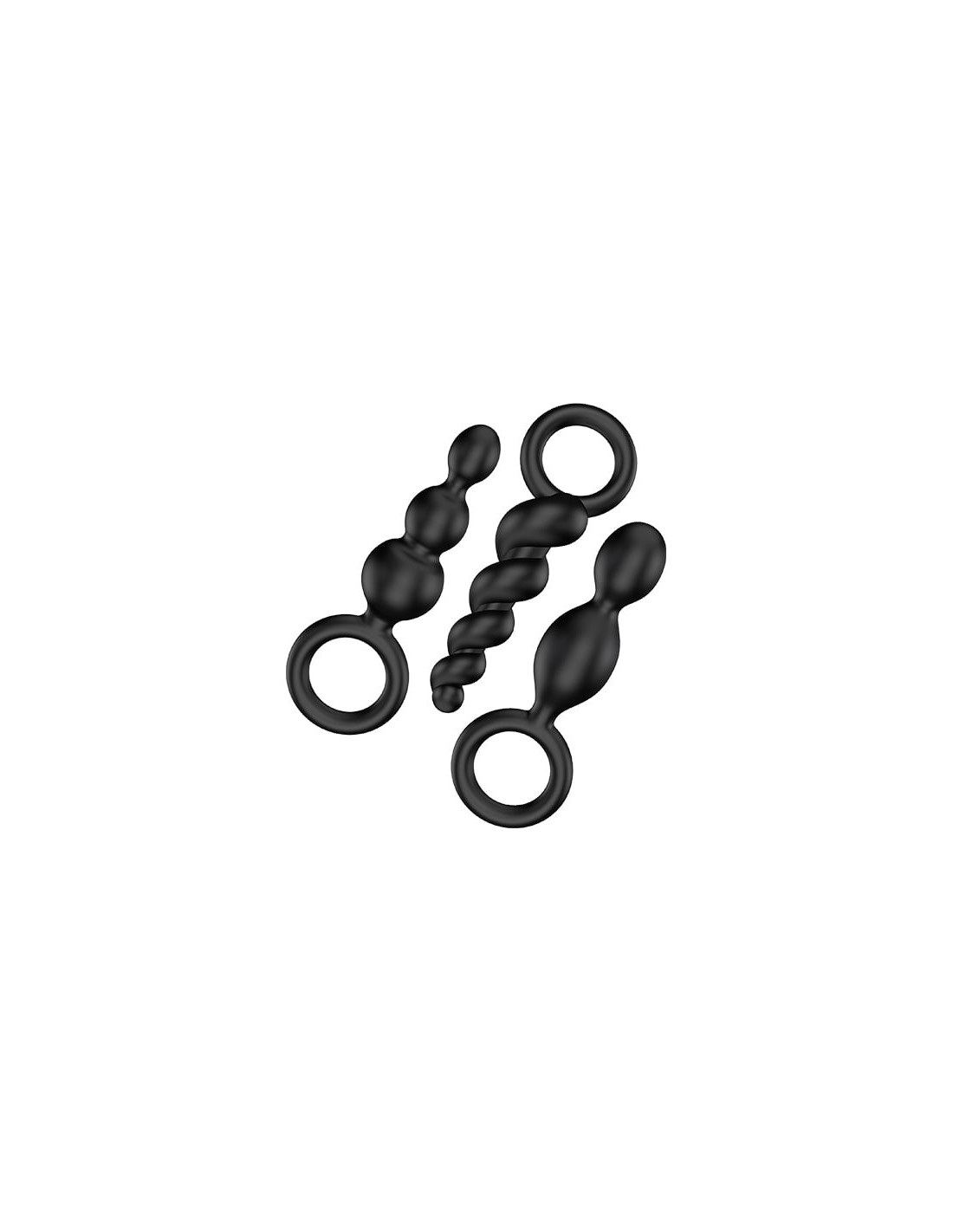 One, two, or three? If you are looking for an exciting range of sensual, feel-good massage games for your back passage, this sexy trio is perfect for your next anal adventure. The flexible plugs are made from medical grade silicone, caressing your anus with a soft-to-the-touch surface. Thanks to their narrow tips and smooth, ultra-soft texture, they are also perfect for beginners and explorers. Choose between a seductively twisted spiral design, a narrow cone shape or the ‘classic’ design which consists of balls of increasing sizes. The set offers a variety of sensations, adding a range of sensual pleasures to your love games whether you’re enjoying a steamy solo session or passionate playtime with your partner. Discover the exciting mix of different, ascending structures and train your back passage in a particularly fun-filled fashion. The exciting back-and-forth lets you enjoy every inch, while the frictionless glide of the plugs will stimulate you in an unforgettably intense manner. If you wear one of these flexible pleasure-givers as a plug, the different structures will caress you with every movement while leaving your hands free - what you do with them is up to your erotic imagination!Ideal for beginners & anal trainingSupport rings for safe pleasure3 Sensual structuresIncreasing diameterDimensions:13,3 x 4,8 cm13,9 x 4,7 cm13,5 x 4,8 cm
