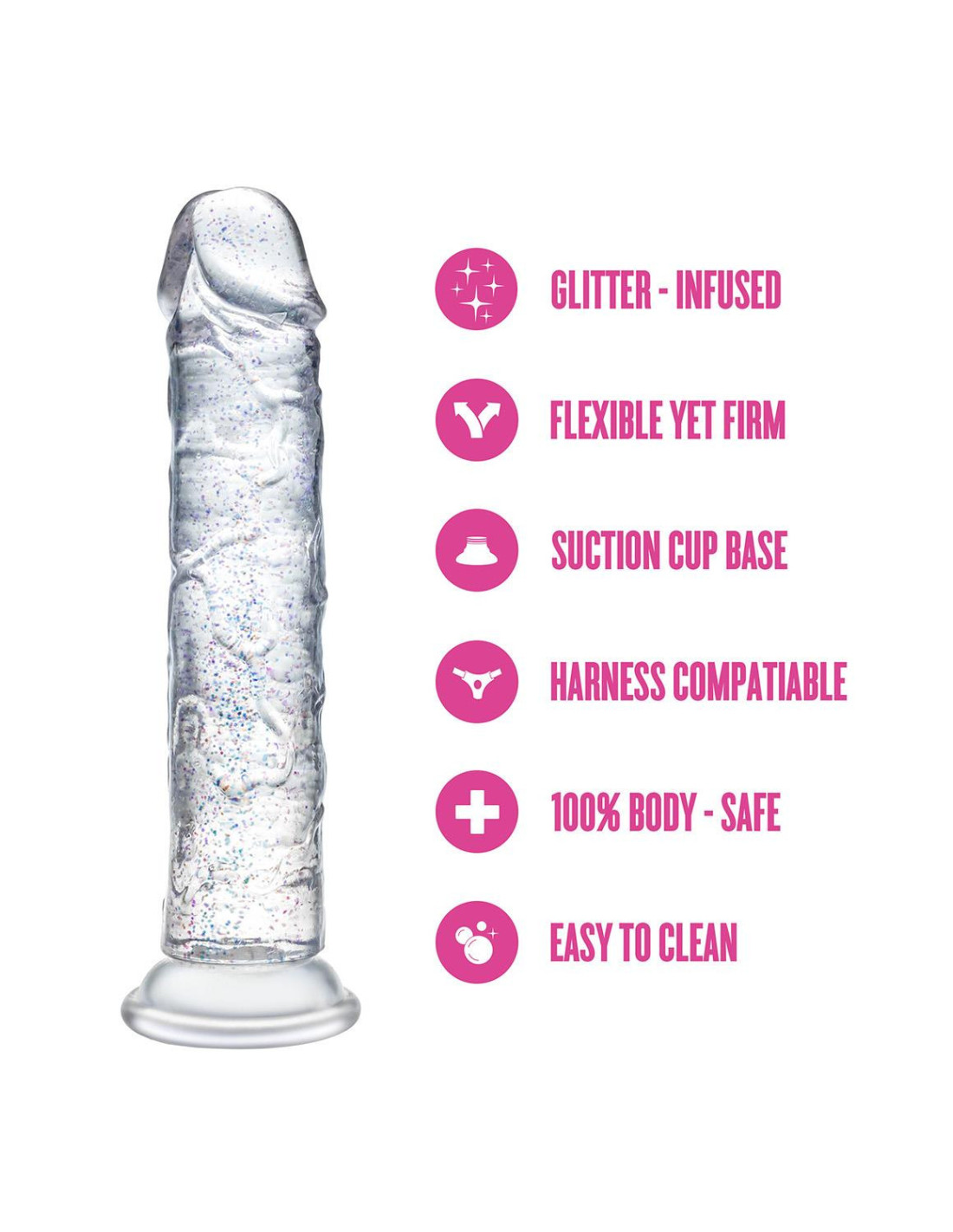 Step into the spotlight with Glamor, the glittering star of your pleasure collection. With its radiant color and subtle sparkle, Glamor adds a touch of glam to every intimate moment. Perfect for those who like their toys with a little extra flair. At 7 inches, it’s a versatile size that’s ideal for both solo exploration and partnered play. Designed to be flexible yet satisfyingly firm, Glamor adapts to your movements while offering a fulfilling experience. The strong suction cup base secures easily to smooth surfaces for hands-free fun and is fully harness compatible, giving you endless options for playful discovery. With its 100% body-safe design, Glamor is easy to clean and always ready for an encore. Whether you're indulging in a solo performance or sharing the stage with a partner, Glamor ensures every scene ends with a standing ovation.Glitter-infused for vibrant colour and sparkleFlexible yet firm for maximum pleasureSuction cup base and harness compatible100% Body-safe, travel-friendly, easy to cleanLength: 7 inch / 17,8 cmInsertable length: 6.5 inch / 16,5 cmWidth: 1.5 inch / 3,8 cm