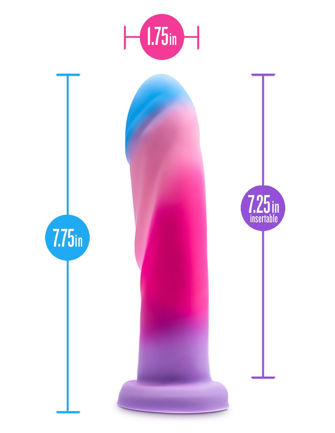Modern, stylish, and beautiful - Meet Avant Borealis Dreams! This artisanal dildo is hand sculpted with your utmost pleasure and comfort in mind, crafted with a neon hue that brings you all the sweet & intimate feelings of a sugary cotton candy sky. Avant Borealis Dreams flaunts a gracefully wide shaft, shaped with textured ridges and a broad head to maximize your G-spot and P-Spot pleasure during play. It’s crafted with Purio®, the finest platinum-cured liquid silicone and wrapped in satin smooth UltraSilk®, providing a supremely soft feel upon penetration. Avant is body-safe, free of phthalates, fragrances, latex, and paraffins. It’s also harness compatible with a strong suction cup base that opens a world of new fascinating possibilities for hands free play. Embrace the glow of pleasure as Avant Borealis Dreams guides you through a spectrum of intimate exploration, painting your moments of passion with the vibrant, playful colors of an everlasting twilight.Crafted with the finest Purio® platinum cured liquid siliconeWrapped in satin smooth Ultrasilk®Supremely soft and comfortableArtisanal handcrafted and thoughtfully designed for your pleasureStrong suction base and harness compatible for hands-free pleasureLength 7.75 inch / 19,7 cmInsertable length 7.25 inch / 18,4 cmWidth at its widest point 1.75 inch / 4,4 cm