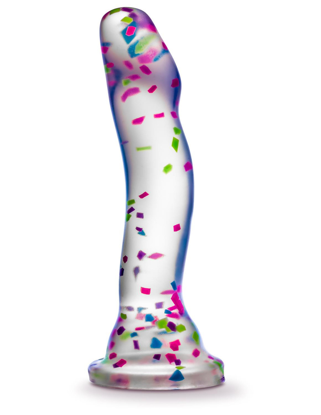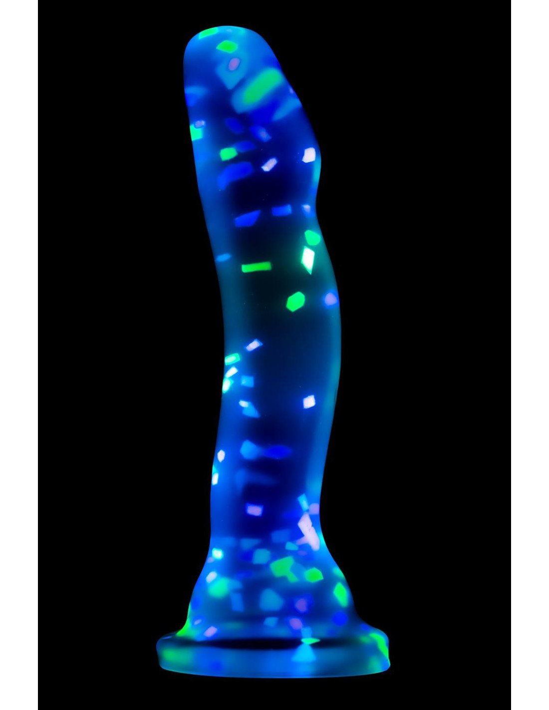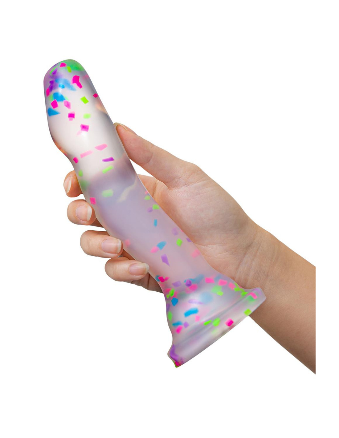 Hanky Panky is a confetti-filled clear dildo that’s ready to have some fun! Turn off the lights and watch it glow as you play. The prominent head is perfect for G or P spot stimulation and it’s made of platinum-cured Puria™ silicone, making it body-safe and Pthalate-free. Are you ready for some Hanky Panky?Glows in the dark for added fun and easy to see at night during playSturdy suction cup baseStrap on harness compatiblePure Platinum cured Purio™ siliconeWater-based, hybrid lube safeClear to watch as you playColorful confetti inside!Length 7.5 inch / 19 cmInsertable length 6 inch / 15,2 cmWidth at its widest point 1.5 inch / 3,8 cm