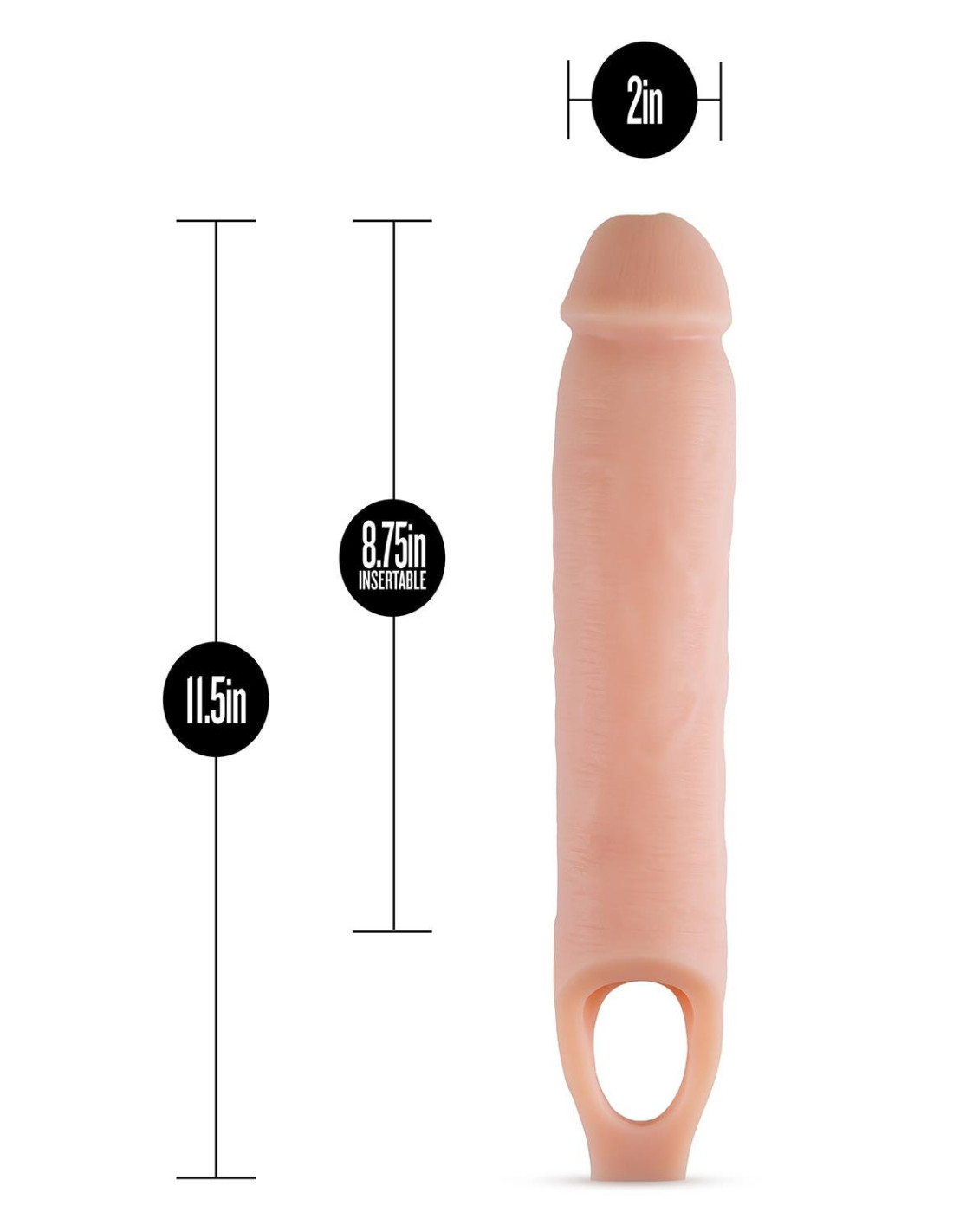 The Performance 11.5 Inch Cock Sheath is soft and lifelike for a realistic feel—just like your shaft, but bigger. The internal ribbing creates suction that holds the sheath securely on and delivers extra sensation to the wearer. Just insert your penis into the Performance 11.5 Sheath and then slide your testicles through the ball strap. This long, girthy sheath is perfect for extending your playtime. Made of premium TPE, it's body safe and easy to clean.Penis extender with internal ribbing to create suction and extra sensation. Ball strap secures around ball sac for interrupted play. Increases total length plus girth. Dimensions:Insertable Length: 6.5 inches = 16,5 cmLength: 8.5 inches = 21,6 cmWidth: 2 inches = 5 cm