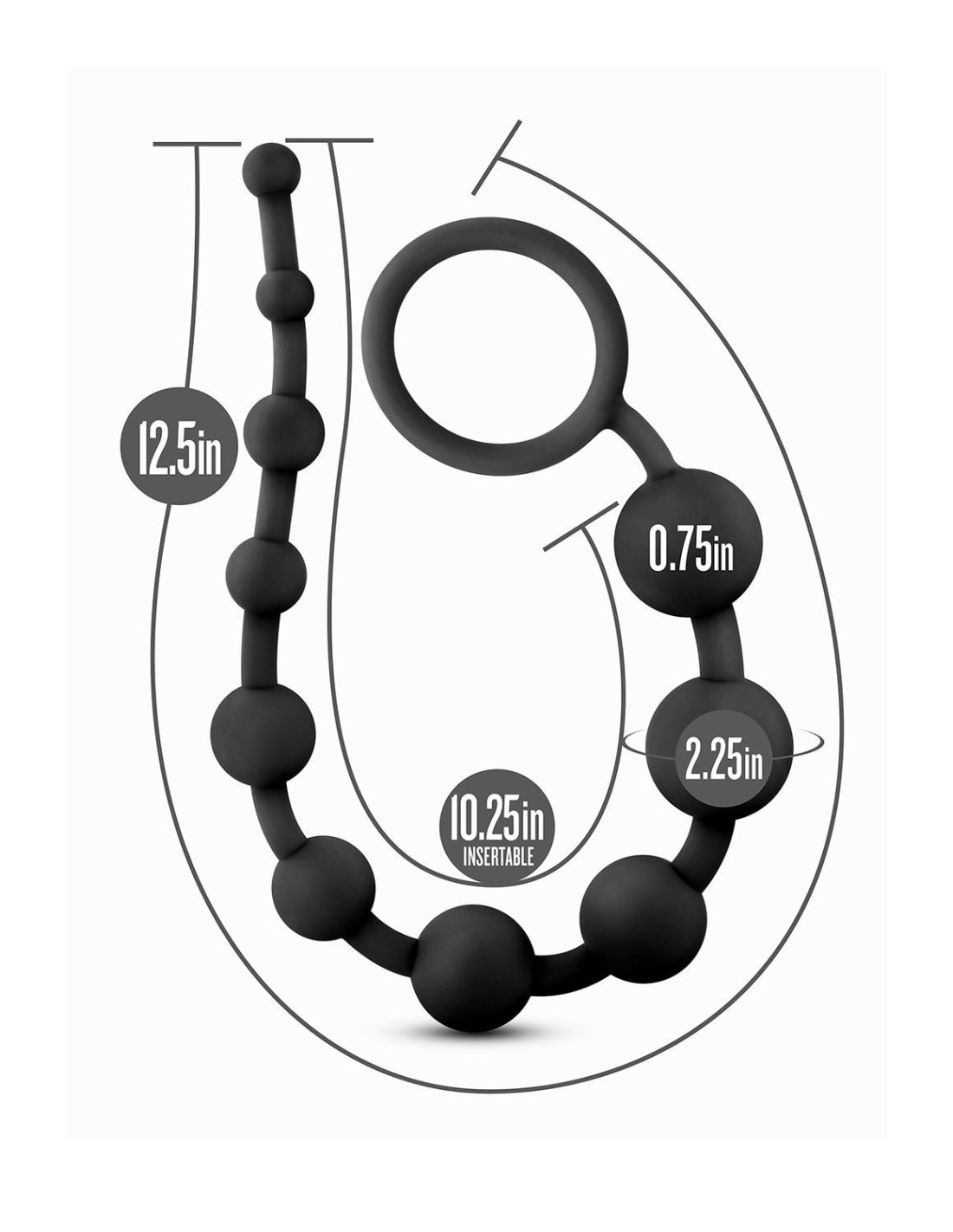 For anyone looking to explore new anal sensations alone or with a partner! Anal Adventures provides many options to choose from. These beads will excite and stimulate as they're moved in and out. The Ultrasilk™ Silicone, with its silky smooth feel, warms with your body heat.Explore: Perfect for adding new sensationsIncrease: The 10 beads increase progressively in size, for the easiest insertionFeeling: The beads arouse and excite as they're inserted or removed one by oneMade from UltraSilk Silicone and body safe ABS plastic, contains no phthalates, parrafins or latexSmooth satin finishLooped handle for easy retrievalLength 12.5 inch / 31,7 cmInsertable length 10.25 inch / 26 cmWidth 0.75 inch / 1,9 cm