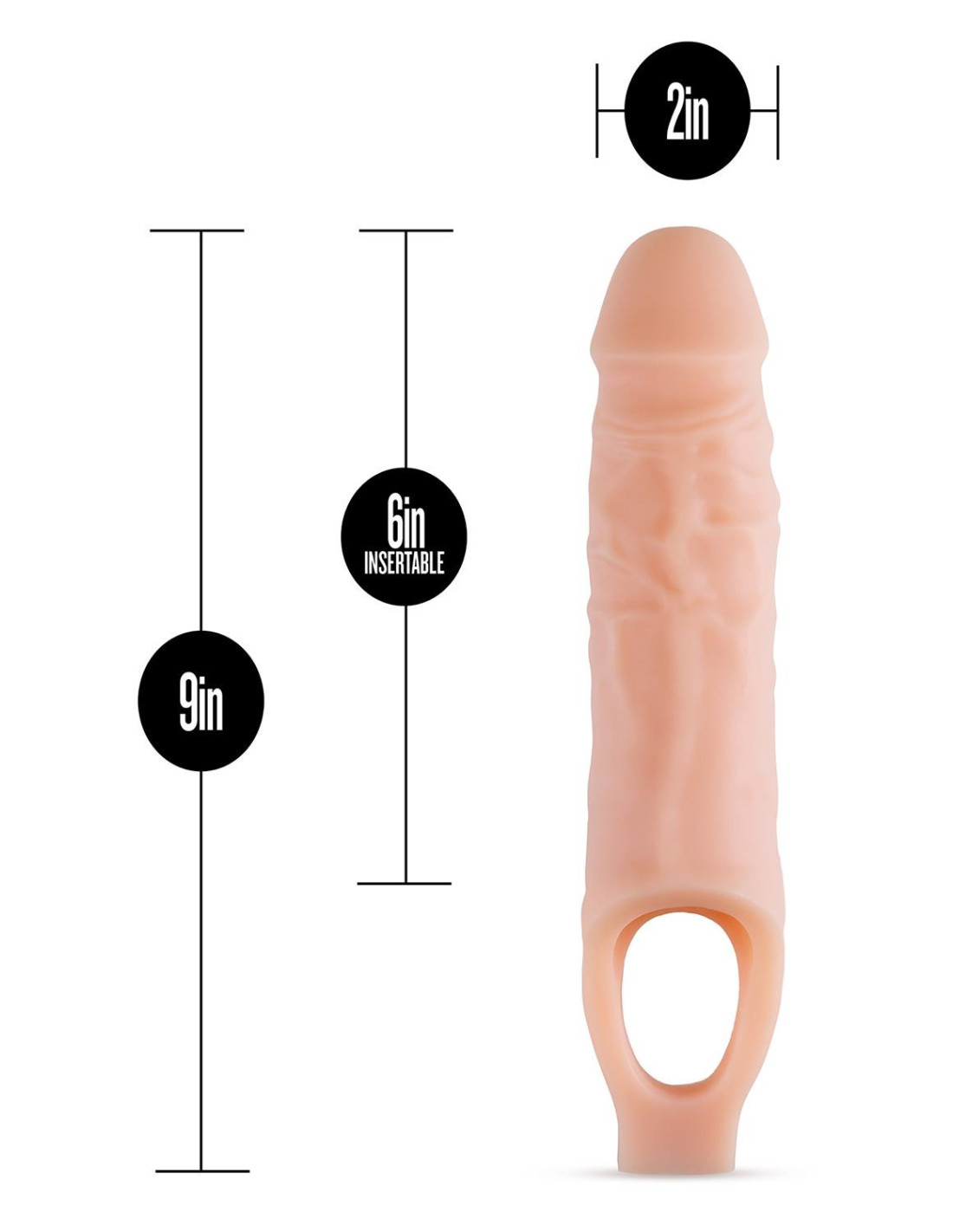The Performance Plus 9 Inch Cock Sheath Penis Extender offers a smooth, realistic feel while maximizing your potential. Gain more girth and half an inch more length! The internal ribbing creates suction that holds the sheath securely in place. It also amplifies sensation for the wearer. Just insert your penis into the Performance Plus 9 Inch Sheath and then slide your testicles through the ball strap. Then explore new dimensions with your partner! Made of platinum cured silicone, the Performance Plus 9 Inch Cock Sheath is durable, body safe, and easy to keep clean.Extra girth and lengthInternal ribbing creates suction and more sensation for the wearerBall strap secures around ball sacLength 9 inch / 22,8 cm Insertable length 6 inch / 15,2 cm Width 2 inch / 5 cm