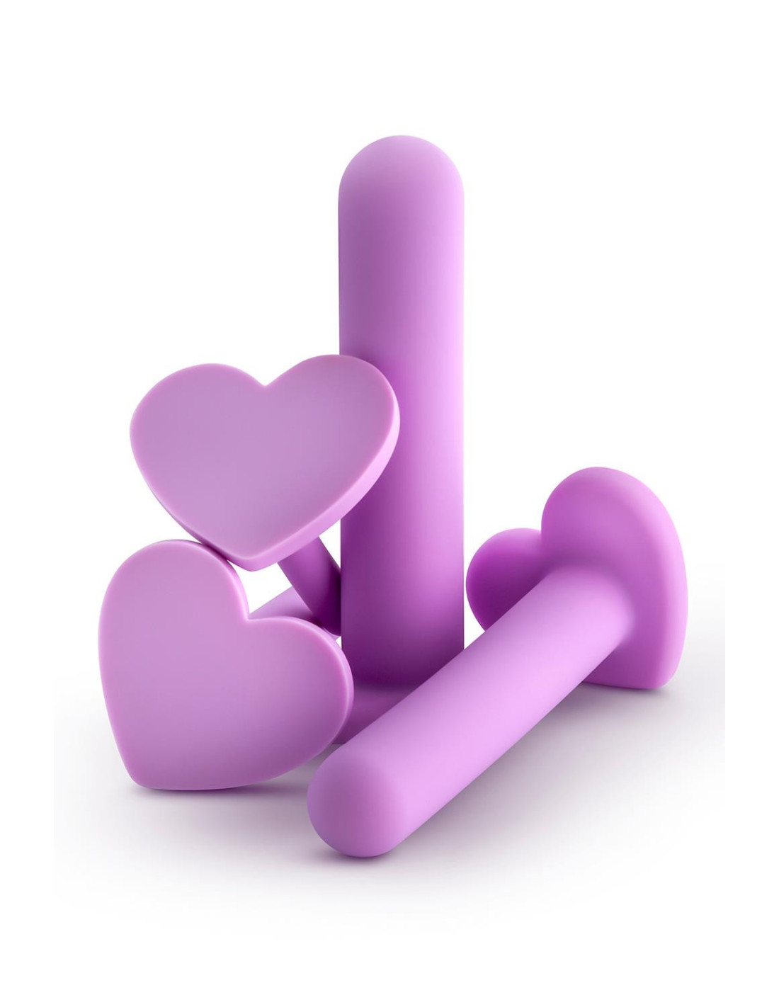 The Wellness Silicone Dilator Set is carefully crafted for your comfort. Each vaginal dilator in this affordable 4-piece kit features a straight shape and rounded tip to avoid cervical irritation. With 4 differently sized dilators, starting at only 0.5 inches width, the Wellness Set lets you start small and move upward in size whenever you feel ready. These dilators' heart-shaped bases are a cute, playful touch! Plus, the satin smooth silicone feels luxurious to the touch. Use with your favorite quality water-based lubricant for easier insertion. Made of 100% platinum cured silicone, the Wellness Dilator Set is hypoallergenic, non-porous, and easy to clean.4 Dilators increasing in sizeStraight shape rounded tip and satin smooth finish deliver maximum comfortSilicone dilators are hygienic and easy to keep cleanSizes:0.5 inch / 1,27 cm width x 3.5 inch / 8,89 cm length 0.75 inch / 1,90 cm width x 4.75 inch / 12,00 cm length1 inch width / 2,54 cm x 5.5 inch / 13,97 cm length1.25 inch / 3,17 cm width x 6 inch / 15,24 cm length