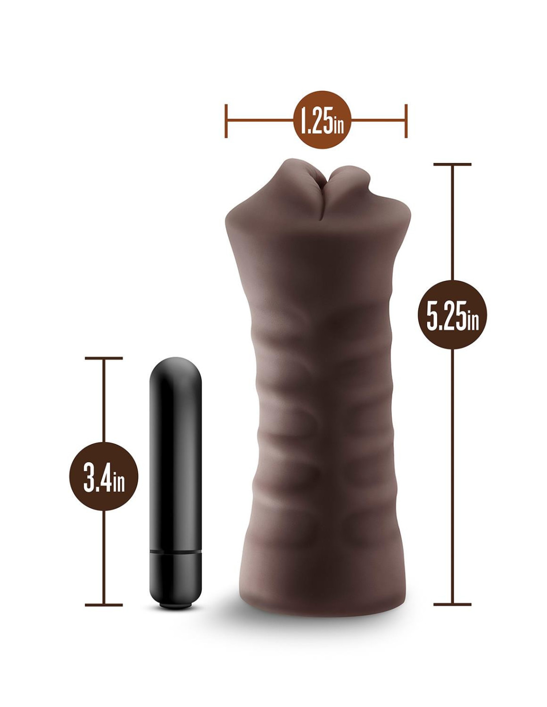 The Hot Chocolate Heather delivers a soft and supple mouth that's waiting to engulf your shaft. This realistic stroker is tight, flexible, and filled with sensational textures. It comes with a multi-speed vibrating bullet, to enhance sensation as you stroke. Open-ended and easy to clean, Heather will accommodate any size penis. Made of premium TPE, it's high-quality and body safe. Bullet vibe requires 1 AAA battery (not included).Feels real: Soft, ribbed canal for the most lifelike experienceVibrating: One-speed bullet vibe to enhance sensations as you strokeAccommodating: Open-ended sleeve will take any size and is easy to cleanMade from TPE, contains no fragrances, phthalates, paraffins or latexLength 5.25 inch / 13,3 cmWidth 1.25 inch / 3,1 cmRequires 1x AAA battery, not included