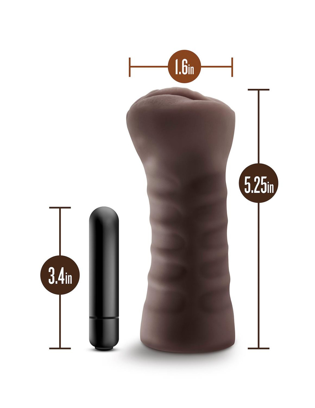 The Hot Chocolate Alexis is aching to take you whenever you want her. This soft, vagina-shaped masturbator is made of lifelike X5, for the perfect balance of soft and firm. Plus, the one-speed vibrating bullet delivers even more sensation up and down your shaft. Sized for convenient one-hand stroking, Alexis is open-ended to fit all lengths and is equipped with a no-slip grip, so you control the speed and depth of your thrusts. Enjoy Alexis alone or with your partner! Made of premium TPE, this stroker is high-quality and body safe. Bullet vibe requires 1 AAA battery (not included).Feels real: Soft, ribbed canal for the most lifelike experienceVibrating: One-speed bullet vibe to enhance sensations as you strokeAccommodating: Open-ended sleeve will take any size and is easy to cleanMade from TPE, contains no fragrances, phthalates, paraffins or latexSoft and supple masturbator.Requires 1x AAA battery, not includedLength 5.25 inch / 13,3 cm Width 1.5 inch / 3,8 cm