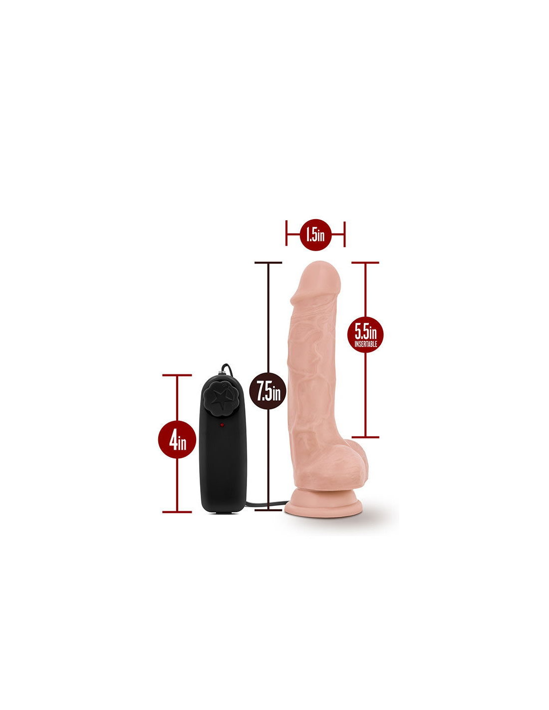 The doctor is in! The Dr. Tim 7.5 Inch Vibrating Cock with Suction Cup aims to please with its soft, realistic feel. This toy's multi-speed vibrations are adjustable so you can find the right level of power for your body. With 5.5 inches of insertable length and 1.5 inches thickness, Dr. Tim is designed to be a comfortable average size. Alone or with a partner, take advantage of Dr. Tim's deep suction cup base, which will stick to any smooth, flat surface for hands-free play—and it's also harness compatible. Easy to clean, Dr. Tim is made of body safe, non-porous PVC: just wash with a gentle soap and water, or your favorite toy cleaner, and let air-dry. Vibe requires two AA batteries (not included).Lifelike details and firmness, for a better-than-real experience Adjustable multi-speed vibrations Strong suction cup base is also harness compatibleMade of non-porous PVC, contains no fragrance, phthalates, paraffins or latexLength 7.5 inch / 19 cmInsertable length 5.5 inch / 13,9 cmWidth 1.5 inch / 3,8 cmRequires 2 AA batteries, not included.