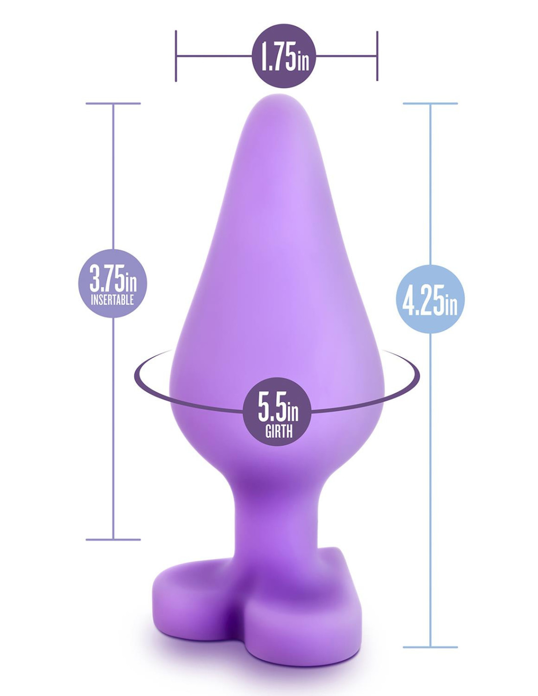 Introducing Naughtier Candy Hearts, a bolder version of the super popular Naughty Candy Hearts the world’s first heart shaped butt plug! You asked for it, so we made them bigger and naughtier! Measuring over 4 inches (10,5 cm) from top to bottom, the bulb is 3 inches (7 cm) long and 1.6 inches (4 cm) in diameter, making it a great intermediate anal toy. The shape is a gentle conical taper for easy insertion. Made of soft silicone with a smooth and silky finish, these plugs are hypoallergenic and phthalate free, as well as boilable and freezable. The message is molded into the patented heart shaped base, and the plug's solid construction makes it a safe toy for your peace of mind as well as pleasure. Say what you really mean with Naughtier Candy Hearts!A great intermediate anal toy, shaped for comfortable inserttionShape and base securely anchors in your tushErotic message on the heart shaped base The world's first heart shaped anal plug, soft and flexible, satin smoothLength 4.25 inch / 10,8 cmInsertable length 3.75 inch / 9,5 cmWidth 1.75 inch / 4,4 cm