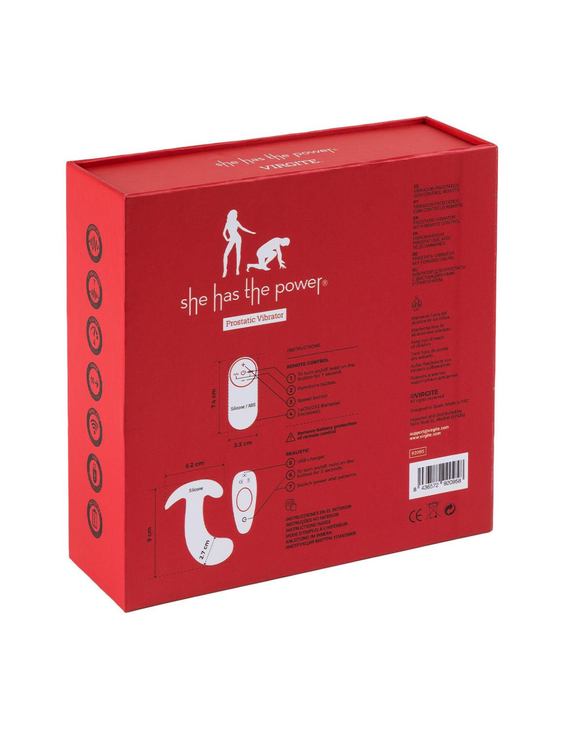 Virgite, erotic things, is a registered brand and designed in Spain made with high quality materials. It is made up of different product lines that will be expanded for all types of audiences. You choose who has the power: her, him or both? Powerful anal toy made of very soft silicone, adaptable to the anal walls. In addition, it is rechargeable via USB cable and can be controlled from its remote with a range of up to 10 meters away. Characteristics: Material: silky smooth silicone It contains a powerful motor at its end to enjoy more of the vibration. 4 speeds. 7 modes of vibration. With remote control. Distance range up to 10 meters. Waterproof. Rechargeable via USB cable. Total measurements: 9 cm x 6'2 cm. Insertable width: 2.7 cm.