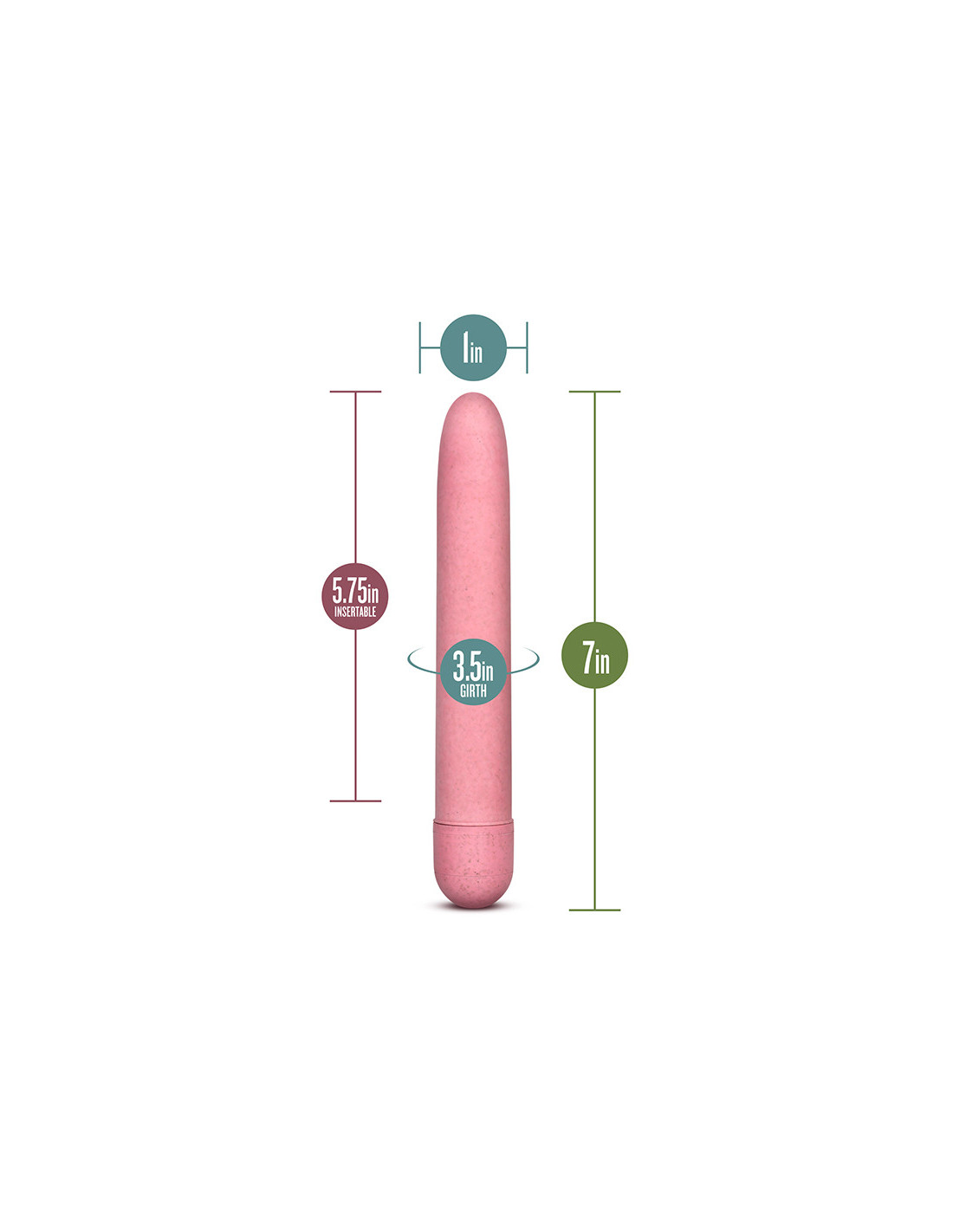 Length 7 inch / 17,7 cmInsertable length 5.75 inch / 14,6 cmWidth 1 inch / 2,5 cmAdjustable multi-speed vibrationsMade with Biofeel, a plant-based materialRequires 2 AA batteries, not includedPhthalate, latex, and fragrance free Bioplastic ♻️ Download Gaia FAQWhat makes Gaia an eco-friendly, sustainable product?Gaia is the first collection of sustainable made vibrators, made of Blush’s proprietary materials BioFeelTM, a non-petroleum plant-based bioplastic, a polymer compound mixed with plant-based material, and BioTouchTM, a natural rubber material with great high tensile strength and tear resistance for long-lasting durability. The non-petroleum-based materials such as natural rubber and bioplastic are a far better choice for the environment than synthetic rubber or plastic. Additionally, these materials are mindfully sourced from sustainable and responsible farmers.What is BioFeelTM?BioFeelTM is Blush’s unique plant-based bioplastic, a polymer compound material mixed with plant-based materials. This material is the perfect choice for a vibrator since it is nonporous, making it body safe and easy to clean. It looks and plays like any hard plastic toy. Blush’s BioFeelTM is smooth to the touch, and is made from at least 35% sustainable non-petroleum based plant matter (wheat). Other manufacturers are using 100% petroleum based plastic. By using a natural plant based material, Blush is creating less greenhouse gases. This makes our products more sustainable and better for the environment. What is BioTouchTM?BioTouchTM is Blush’s proprietary version of natural rubber material. It meets strict mechanical and chemical requirements and is sturdy, but soft enough for pleasure products. It has high tensile strength and tear resistance ensuring your toy will go the distance with you. BioTouchTM is nonporous, making it body safe and easy to clean. BioTouchTM is coated with our