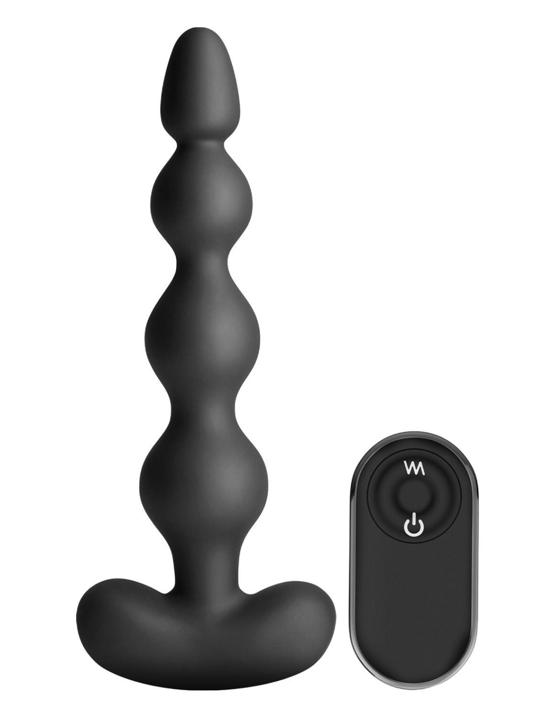 Reign by Renegade - vibrating anal beads designed for deep, rhythmic pleasure. Made of body-safe silicone, Reign features 3 speeds and 6 functions of powerful vibration. Includes a rechargeable wireless remote for effortless control. Waterproof. Compatible with all lubricants.Vibrating anal beads3 Vibration speeds and 6 functionsWith rechargeable, wireless remote controlWaterproofCompatible with all lubricantsProduct Dimensions:Vibe: 7.05 x 2.8 x 1.18 inch / 17,9 x 7,1 x 3,0 cmRemote: 2.76 x 1.38 x 0.59 inch / 7,0 x 3,5 x 1,5 cmInsertable Dimensions: 5.91 x 1.42 inch / 15,0 x 3,6 cmProduct Material: SiliconeCharger type: USB-MagnetCharge time: 45 minutesRun time: 50 minutes