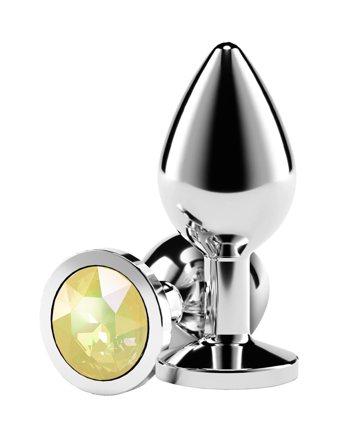 Lightweight, chrome-plated Anal toy designed for visual and sensual excitement. Made of lightweight Aluminum and shaped for effortless penetration, this body safe anal toy is available in a variety of colours, shapes and sizes. Suitable with all lubricants.Lightweight, chrome-plated anal plugSize MMade of aluminumYellow gem stone in baseBody-safeSuitable with all lubricantsProduct Dimensions: 3.31 x 1.38 x 1.38 inch / 8,4 x 3,5 x 3,5 cmInsertable Dimensions: 2.76 x 1.3 inch / 7,0 x 3,3 cmProduct Material: Aluminum