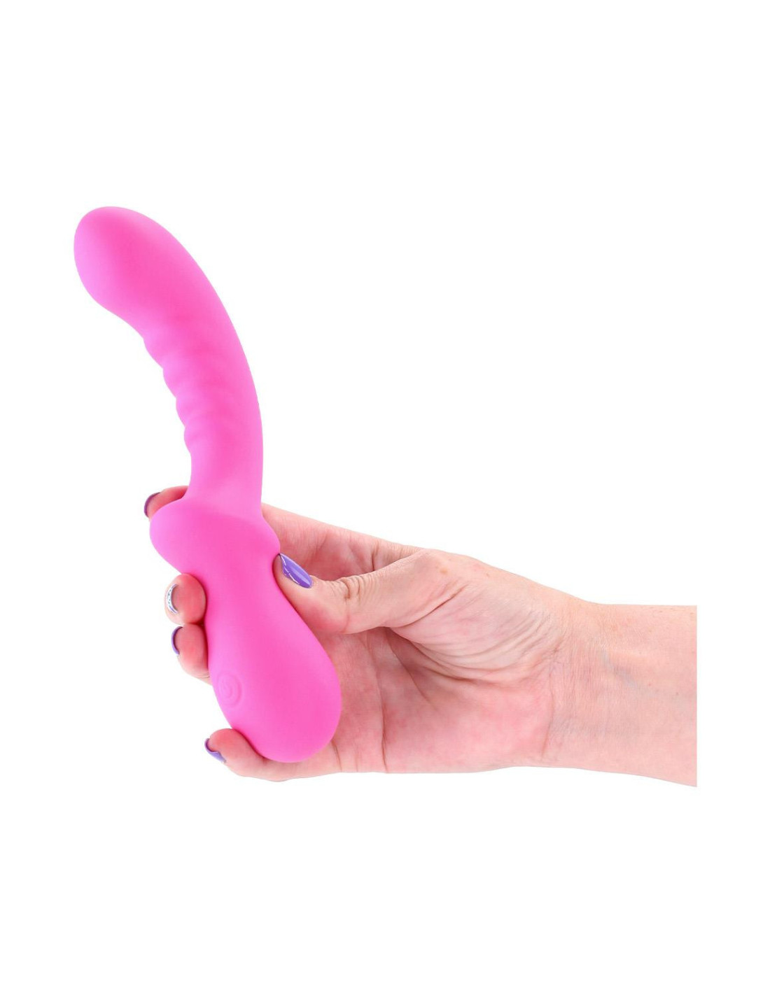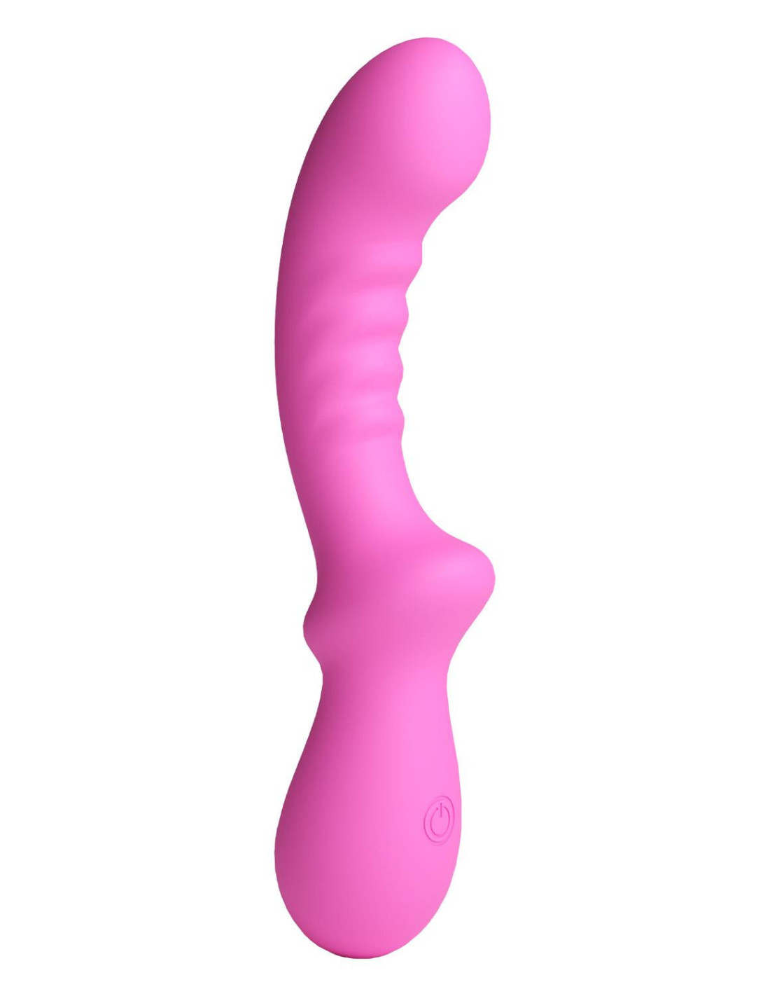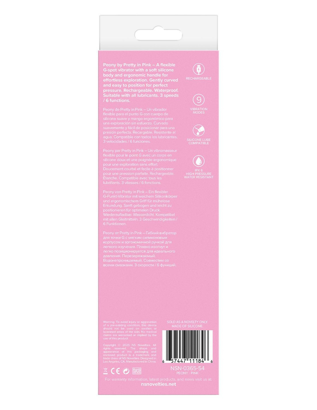 Peony by Pretty in Pink – A flexible G-spot vibrator with a soft silicone body and ergonomic handle for effortless exploration. Gently curved and easy to position for perfect pressure. Rechargeable. Waterproof. Suitable with all lubricants. 3 speeds / 6 functions.Flexible G-spot vibrator9 Vibraton modesRechargeableIPX6 waterproofCompatible with all lubricantsProduct Dimensions: 7.8 x 1.46 x 1.61 inch / 19,8 x 3,7 x 4,0 cmInsertable Dimensions: 4.37 x 1.34 inch / 11 x 3,4 cmProduct Material: SiliconeCharger type: USB-PinCharge time: 120 minutesRun time: 70 minutes